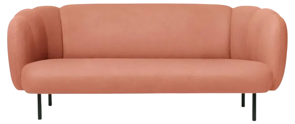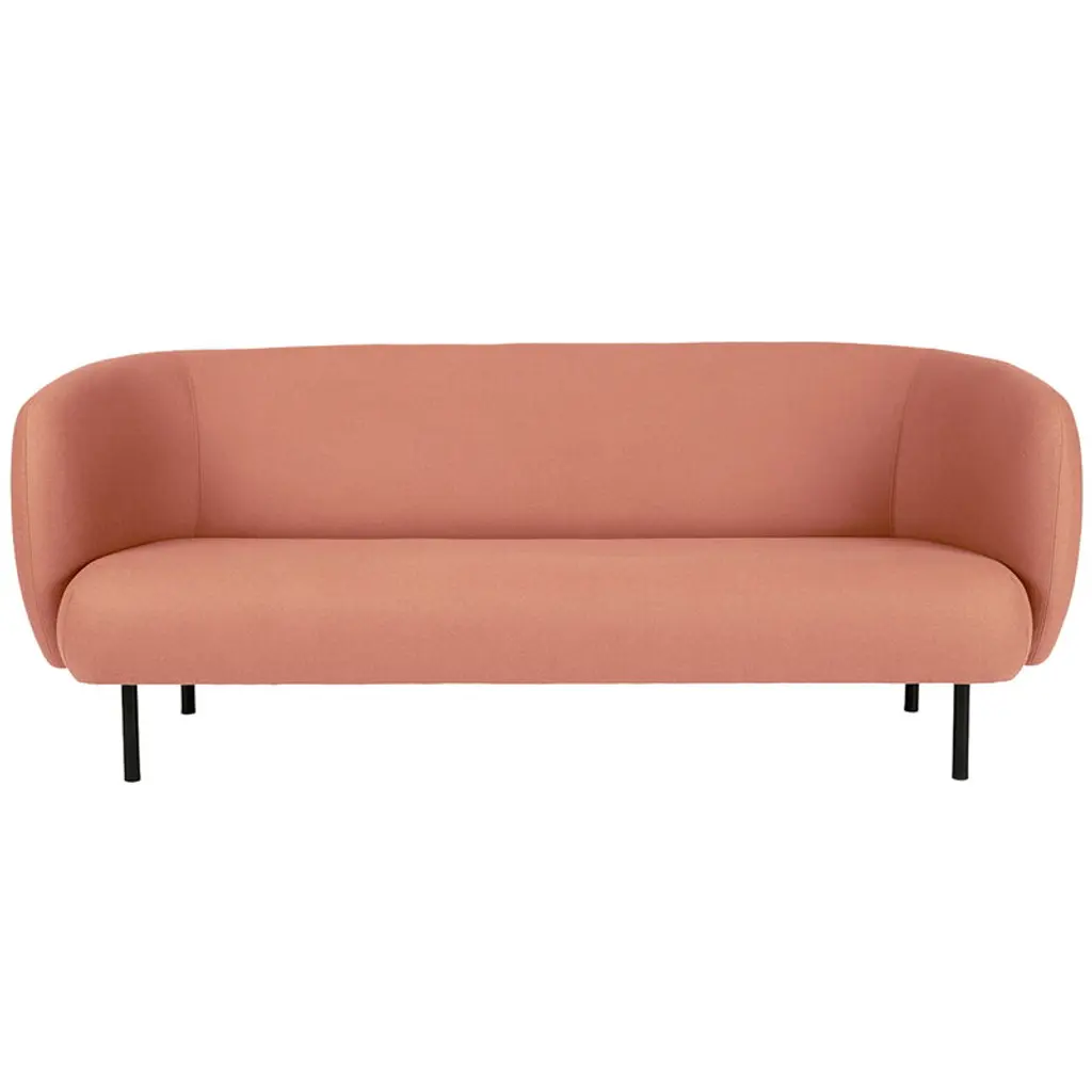 Caper 3 seater with stitches fresh peach by Warm NordicDimensions: D200 x W84 x H 80 cmMaterial: Textile upholstery, Wooden frame, Powder coated black steel legs.Weight: 55.5 kgAlso available in different colours and finishes. An elegant sofa with an organic design inspired by the puffed sleeves and layered designs of haute couture. Its soft lines and chic details make the Cape sofa a natural focal point, preferably in the company of the armchair in the same range. Both items of furniture are available with or without visible stitching. The sofa looks just as elegant in a modern building as in an old-fashioned luxury flat and has a light look by virtue of its slender metal legs. To achieve aesthetic perfection the Cape range is covered with exclusive furnishing fabrics, including 'Hero', whose soft, almost felt-like surface complements the sofas organic shape, and which is designed by Patricia Urquiola.Warm Nordic is an ambitious design brand anchored in Nordic design history and with a timeless, aesthetic style that inspires you to appreciate the little things in life. The company is the result of several years’ intense work on developing a new design brand with design history, quality and personality at its core. Warm Nordic boasts a colourful and charming universe of furniture, lamps and accessories full of personality. Our designs encapsulate the Nordic spirit, which in its essence is timeless, inclusive and warm.