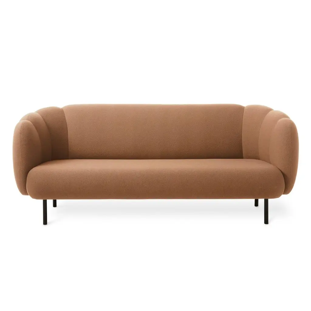 Caper 3 seater with stitches sprinkles latte by Warm NordicDimensions: D200 x W84 x H 80 cmMaterial: Textile upholstery, Wooden frame, Powder coated black steel legs.Weight: 55.5 kgAlso available in different colors and finishes. An elegant sofa with an organic design inspired by the puffed sleeves and layered designs of haute couture. Its soft lines and chic details make the Cape sofa a natural focal point, preferably in the company of the armchair in the same range. Both items of furniture are available with or without visible stitching. The sofa looks just as elegant in a modern building as in an old-fashioned luxury flat and has a light look by virtue of its slender metal legs. To achieve aesthetic perfection the Cape range is covered with exclusive furnishing fabrics, including 'Hero', whose soft, almost felt-like surface complements the sofas organic shape, and which is designed by Patricia Urquiola.Warm Nordic is an ambitious design brand anchored in Nordic design history and with a timeless, aesthetic style that inspires you to appreciate the little things in life. The company is the result of several years’ intense work on developing a new design brand with design history, quality and personality at its core. Warm Nordic boasts a colourful and charming universe of furniture, lamps and accessories full of personality. Our designs encapsulate the Nordic spirit, which in its essence is timeless, inclusive and warm.