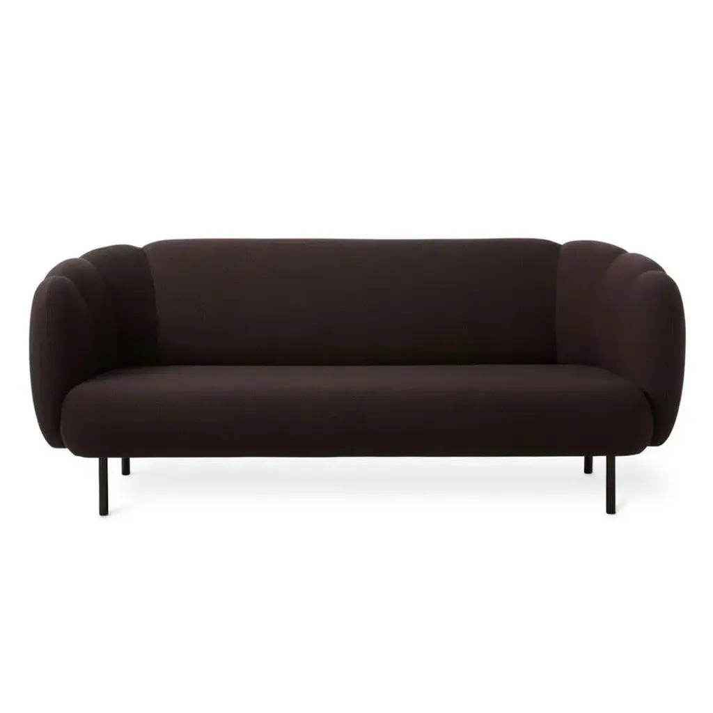 Caper 3 seater with stitches sprinkles eggplant by Warm Nordic. Dimensions: D200 x W84 x H 80 cm. Material: textile upholstery, wooden frame, powder coated black steel legs. Weight: 55.5 kg Also available in different colours and finishes. An elegant sofa with an organic design inspired by the puffed sleeves and layered designs of haute couture. Its soft lines and chic details make the Cape sofa a natural focal point, preferably in the company of the armchair in the same range. Both items of furniture are available with or without visible stitching. The sofa looks just as elegant in a modern building as in an old-fashioned luxury flat and has a light look by virtue of its slender metal legs. To achieve aesthetic perfection the Cape range is covered with exclusive furnishing fabrics, including 'Hero', whose soft, almost felt-like surface complements the sofas organic shape, and which is designed by Patricia Urquiola. Warm Nordic is an ambitious design brand anchored in Nordic design history and with a timeless, aesthetic style that inspires you to appreciate the little things in life. The company is the result of several years’ intense work on developing a new design brand with design history, quality and personality at its core.