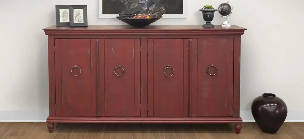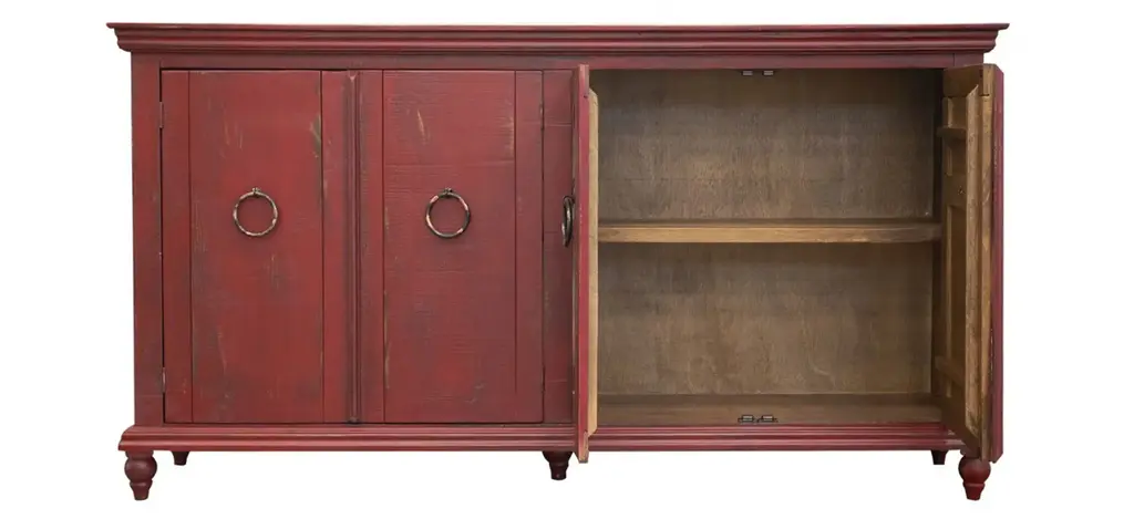Get the most bang for your buck with this 4 door Capri accent console. Offering you ample space to store your treasures, this piece is functional, practical, yet still beautiful to the eye. Featuring gorgeous ring pulls, you'll find this console the perfect piece of furniture to upgrade your living area. Make use of its expansive surface by placing a lamp and a few decorative plants on top to really make it your own.