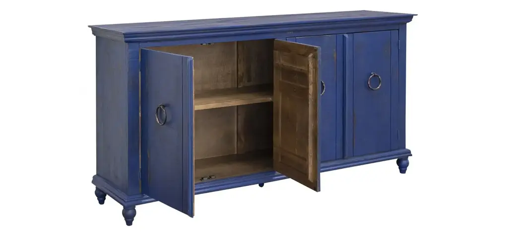 Get the most bang for your buck with this 4 door Capri accent console. Offering you ample space to store your treasures, this piece is functional, practical, yet still beautiful to the eye. Featuring gorgeous ring pulls, you'll find this console the perfect piece of furniture to upgrade your living area. Make use of its expansive surface by placing a lamp and a few decorative plants on top to really make it your own.