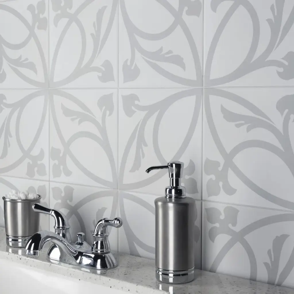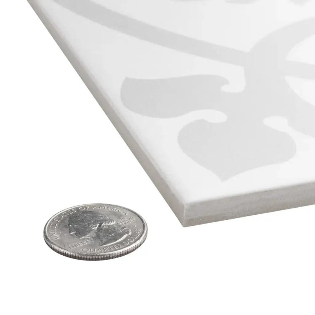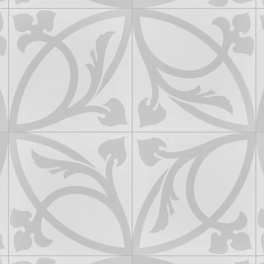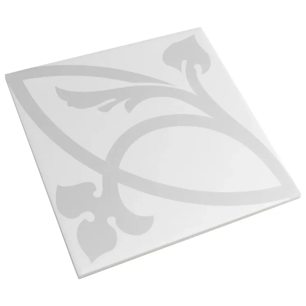 Blending classic style and modern durability, tile captures the look of authentic encaustic tiles in a versatile porcelain body. This tile features flowing lines and curved edges that when laid out, create floral designs with old-world flair. Set on a smooth matte base glaze, this floor, and wall tile has a snow-white color tone accented by light grey decorative patterns. To add further contrast and dimension to the design, this tile features speckled detailing in light grey tones. Radiating modern elegance, it can blend into virtually any design theme, ranging from contemporary projects to traditional installations. Its impervious and frost-resistant features make this an ideal choice for indoor and outdoor installations including, kitchens, bathrooms, entryways, and patios. Tile is the better choice for your space. This tile is made from natural ingredients, making it a healthy choice as it is free from allergens, VOCs, formaldehyde, and PVC.