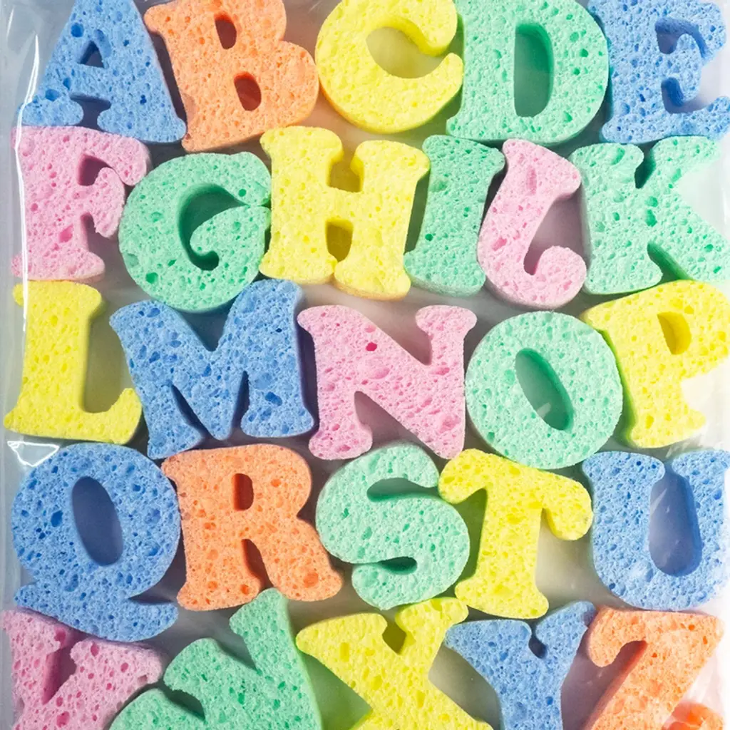 Captain Creative Super Sponges, 2", Uppercase Alphabet, 26 Pieces | Captain Creative Super Sponges are made of real cellulose and are one inch thick. These high quality sponges should be rinsed out and washed before your first use and every occasion thereafter. Super Sponges are 1" thick, very sturdy but may be ripped with some good effort and may become a choking hazard with small pieces for children. This product should be used with children who have adult supervision. This product has 26 sponge letters, they are all upper case, they are in different colors and they are all bold.
