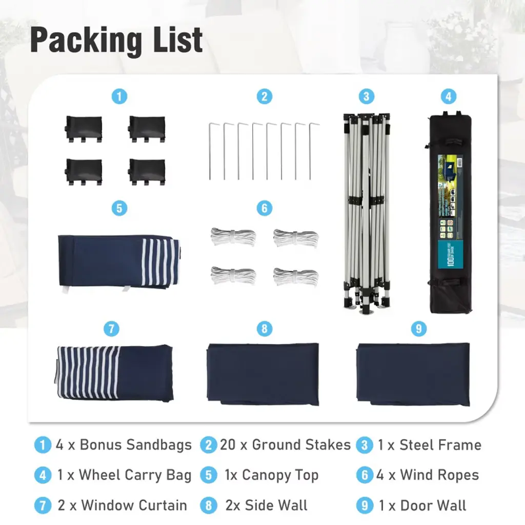 Captiva Designs 10’x10’ Pop-up Canopy Tent With Sidewalls – Easy Setup, Waterproof, And Ventilated For Outdoor Events And Parties (Blue)