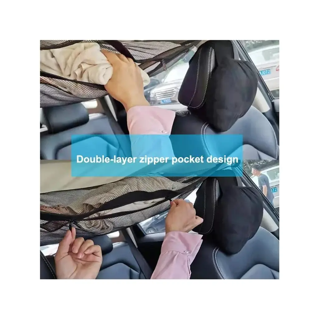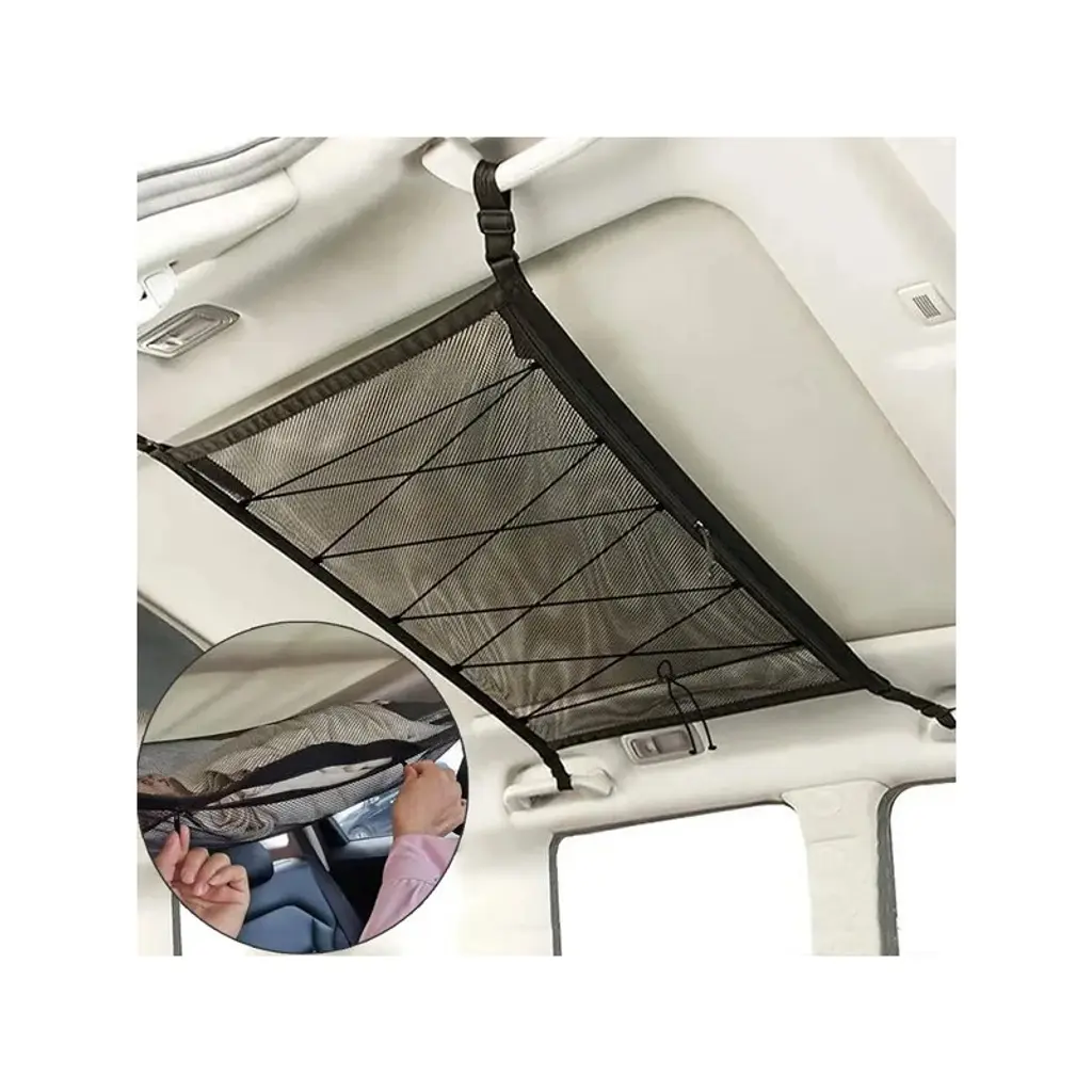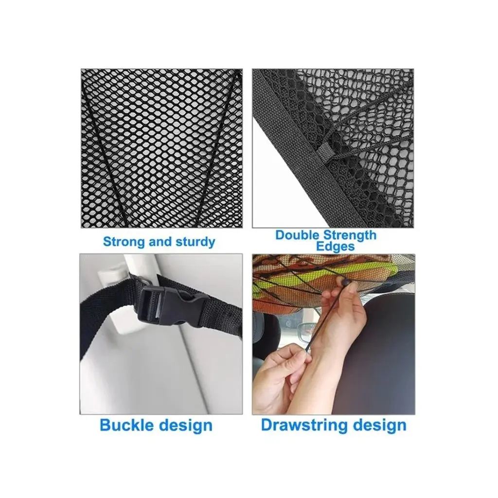 SpecificationDimensions:30.70 in * 20.50 in * 2.00 inWeight:0.5000 lbAvailable Ship to:United StatesDetailsNot enough trunk space? Need a place to store those travel necessities? Car Ceiling Cargo Net to the rescue!Store that jacket you keep in your car just in case; pillows and blankets for that road trip; or plush toys for on-the-go entertainment.Features:Made of high-quality breathable, durable, polyester material.Double-layer design can hold items of all shapes and sizes.Adjustable length with the strong, durable nylon straps.Easy to install, compact and portable so you can attach it where and when you need it. Size: 30.7¡Á20.5 inchesFabric: Polyester Mesh & Nylon StrapsColor: Black