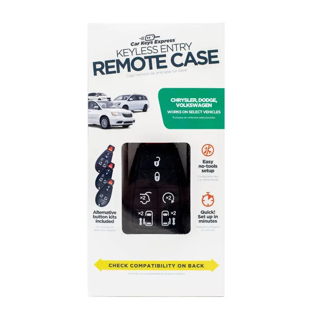 One brand new, aftermarket CHRYSLER replacement remote case + 2 additional button pads for alternative remote configurations. There are no electronics included. You can simply replace the old case on your old remote. Just take the insides out and put them in this shell. Do not pay the dealer $250 for another remote if your case just worn out or broken! This remote case is for remotes with up to 7 buttons. Button pad configurations are: LOCK, UNLOCK, DUAL POWER DOORS, and PANIC; LOCK, UNLOCK, DUAL POWER DOORS, HATCH, and PANIC; LOCK, UNLOCK, DUAL POWER DOORS, HATCH, REMOTE START, and PANIC.Compatible Vehicles include but not limited to:Chrysler Town and Country (2008-2016)Dodge Caravan (2008-2016)Dodge Grand Caravan (2008-2020)Volkswagen Routan (2009-2014)