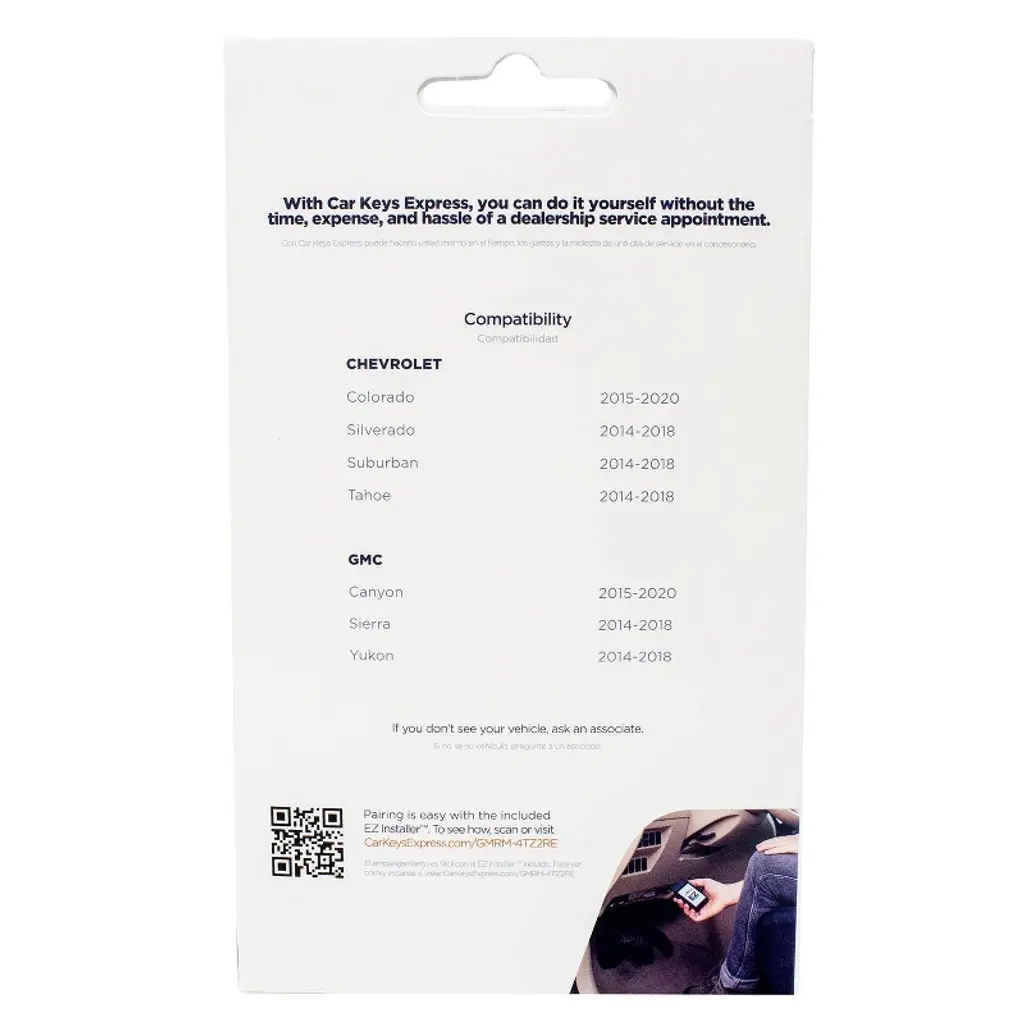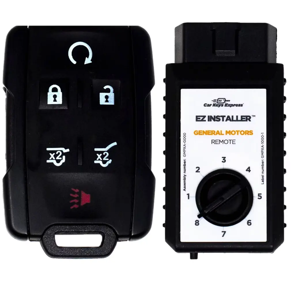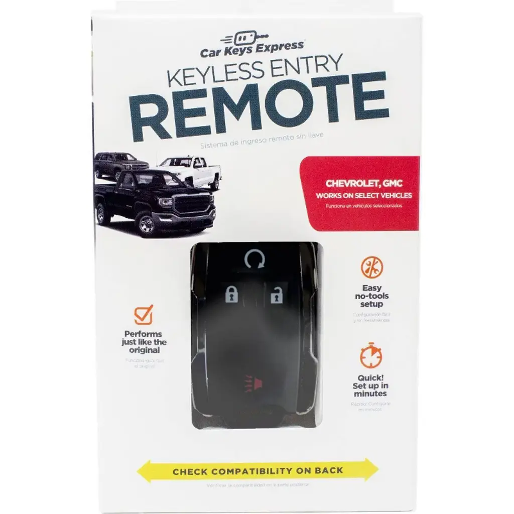 GM Keyless entry replacement remote with pairing device included. Replaces vehicle manufacturer's original remote. This remote has 4 button functions including Lock, Unlock, Remote Start, and Panic. The EZ Installer DIY pairing dongle allows you to pair your remote entirely on your own. Avoid the hassle and expense of having to go to the dealership for pairing. The EZ Installer is a single vehicle use pairing tool. Once you use it on your vehicle, it cannot be used on another.Compatible Vehicles:Chevrolet Colorado (2015-2021)Chevrolet Silverado (2014-2018)Chevrolet Suburban (2014-2018)Chevrolet Tahoe (2014-2018)GMC Canyon (2015-2021)GMC Sierra (2014-2018)GMC Yukon (2014-2018)