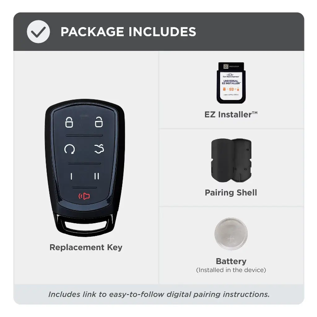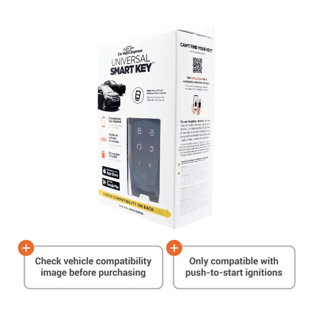 Introducing the world's most advanced car key, from Car Keys Express. This smart key is compatible with a select range of makes, models and years. CHECK VEHICLE COMPATIBILITY BEFORE PURCHASING. It features a unique, seven button interface: Lock, Unlock, Remote Start, Trunk, Function Button 1, Function Button 2, and Panic. This device is capable of matching all of your original smart key's functions and is easily programmed to your vehicle. The state of the art case is designed for durability and longevity.