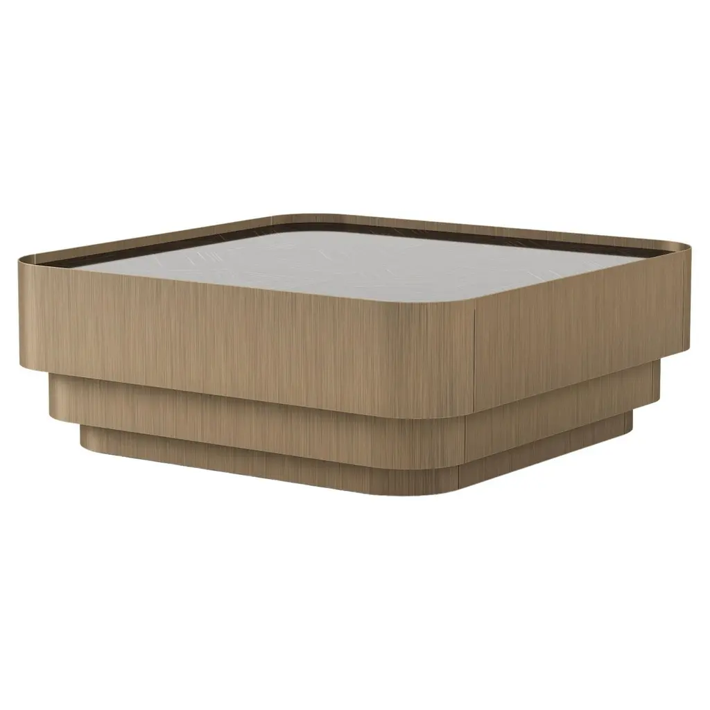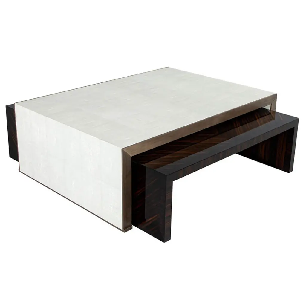 The designs of one of Japan's award winning architects inspired this light grey contemporary Caralyn coffee table. An expert execution of organic geometric style, its natural sculptural form creates its heirloom style aesthetic. Designed for the modern collector.