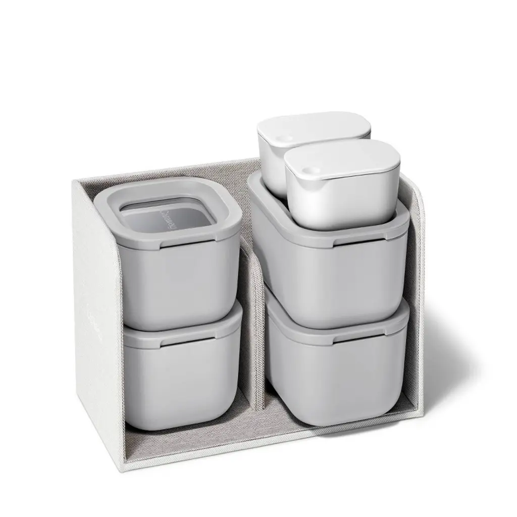 Clean up your kitchen with Caraway's 11-piece Mini Food Storage Set—designed to save space, reduce waste, and keep your kitchen organized. Crafted from non-toxic, ceramic-coated glass, these containers are fridge, freezer, microwave, and oven-safe up to 450ºF. With Air Release Technology, they lock in freshness while keeping odors out. Perfect for portioned meals, snacks, or leftovers, the set includes a magnetic Storage Organizer to keep cabinets clutter-free.