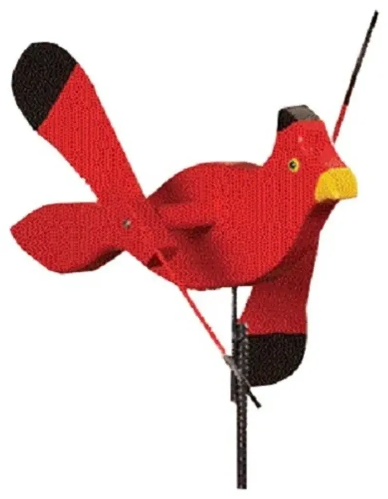 Amish Handmade WhirlybirdsCARDINAL WIND SPINNEROur Whirlybird Wind Spinners are handmade utilizing premium materials and generational craftsmanship. Constructed With 1" thick premium signboard and vinyl spinning wings. Once crafted, each whirligig gets a hand painted finish that is fully weather resistant ensuring years of ���flight". Perfect lawn/garden display or for any Cardinals fan, too!Measures (approx./vary): 20"x6"w36"x 1/4" mounting rod includedPremium 1" thick signboardWeather resistant hand painted finishVinyl Whirligig wings Amish Handmade in the USAPLEASE NOTE: Each is individually handmade-to-order by Amish craftsmen guaranteeing you a unique, true one-of-a-kind piece. Please allow up to 7-10 business day manufacturing time.