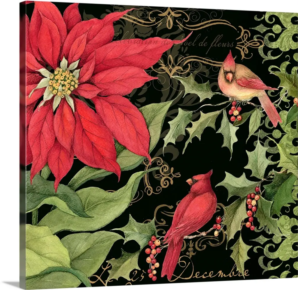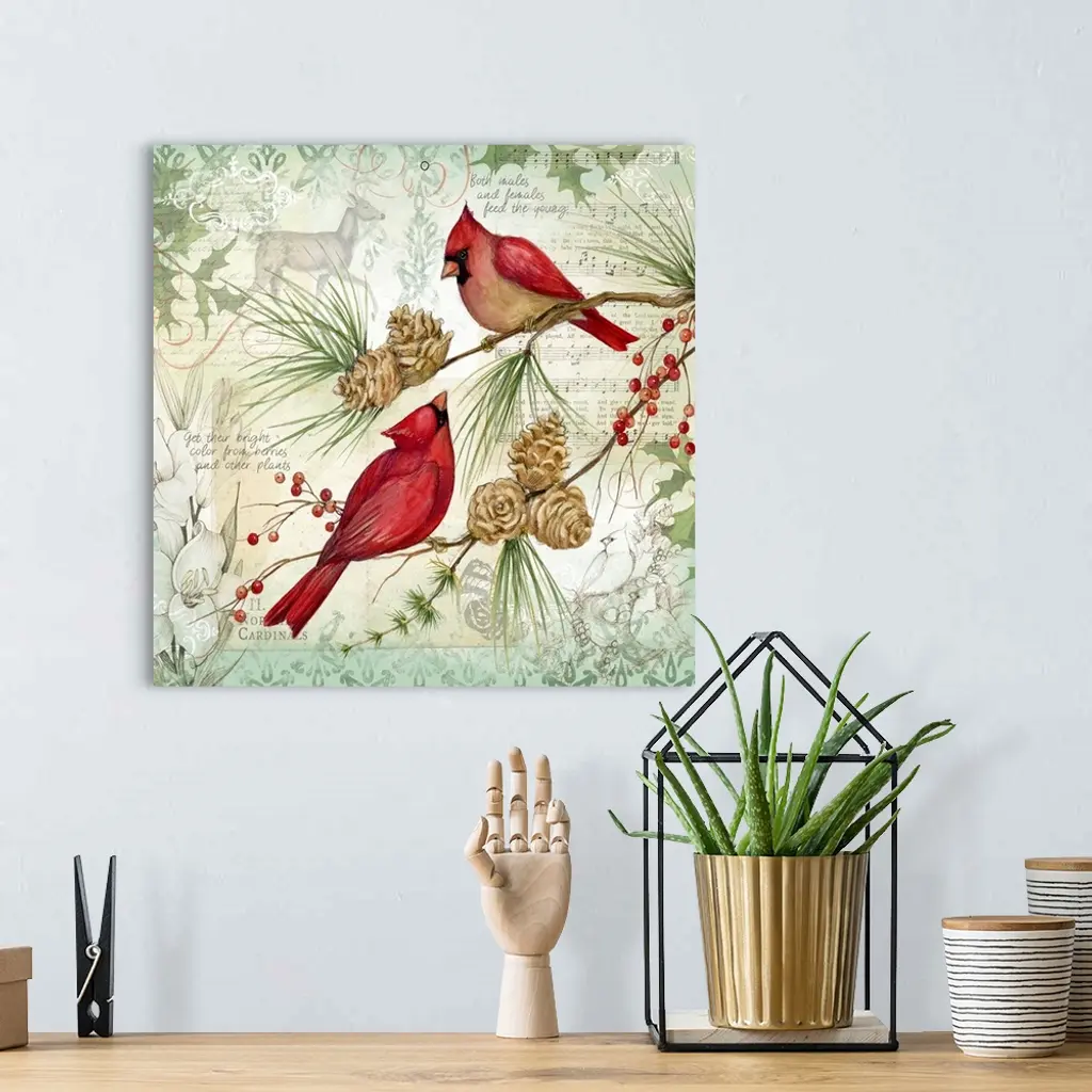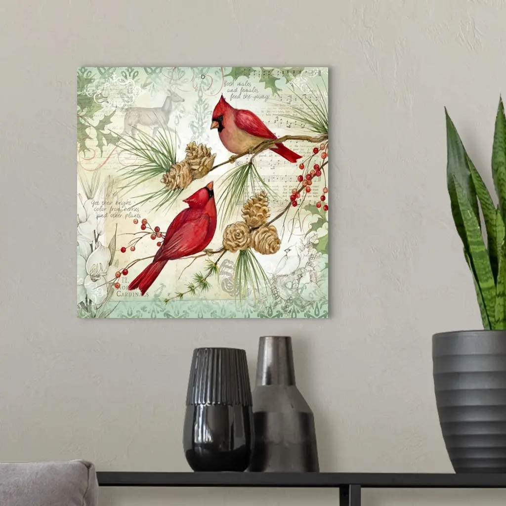 Botanical bird scene brinks the beauty of nature into your winter holiday decor.