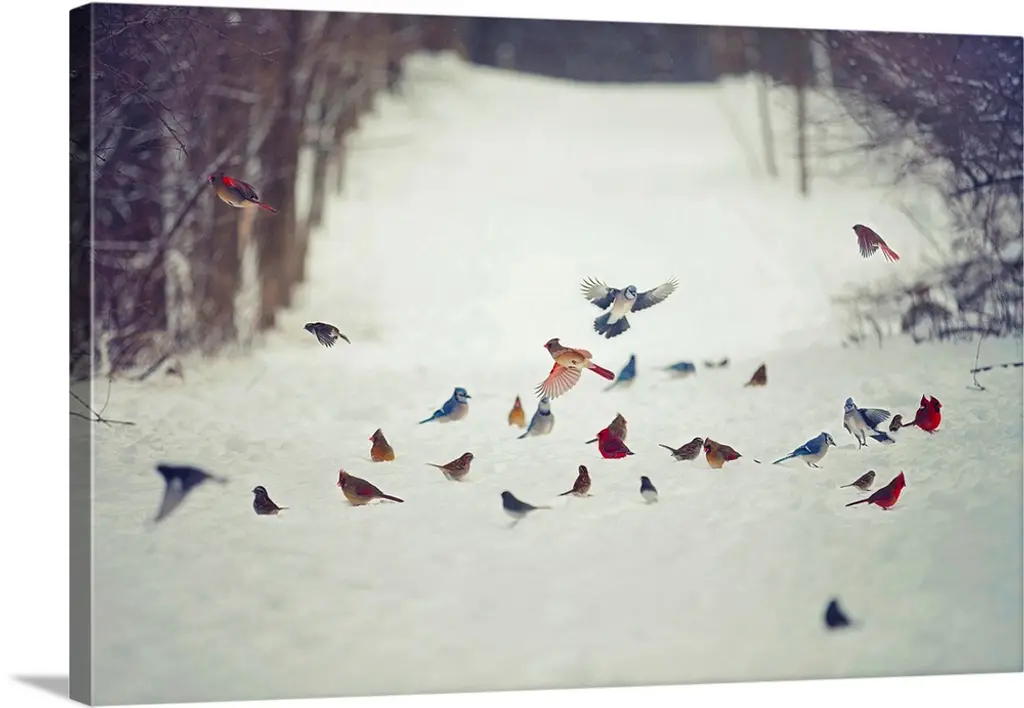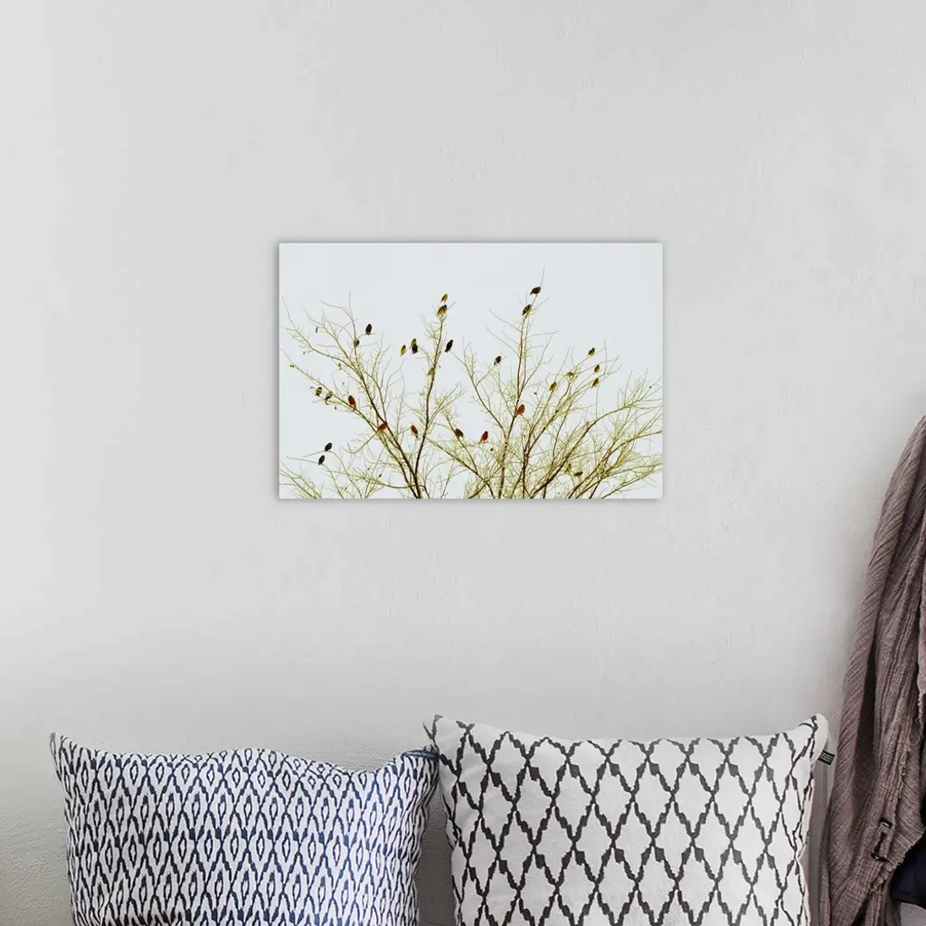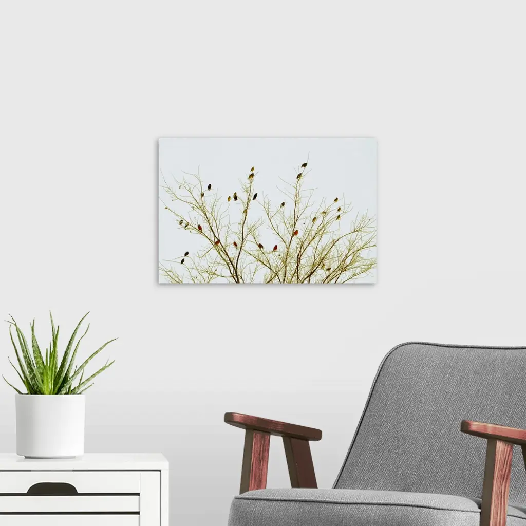Cardinals on tree against sky. wall art for home and office decor. Discover canvas art prints, photos, mural, big canvas art and framed wall art in GreatBigCanvas.com's varied collections.