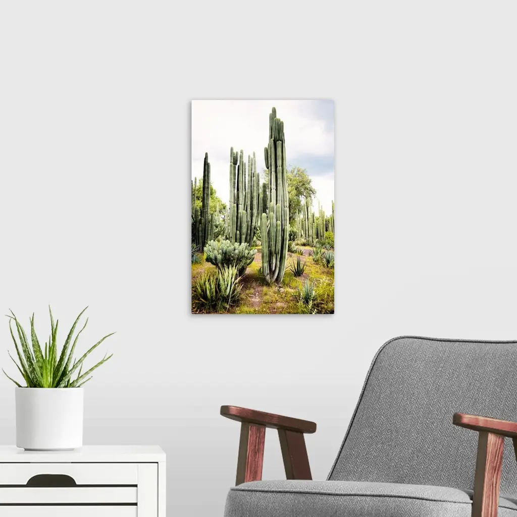 Landscape photograph of a cardon cactus amongst other cacti. From the Viva Mexico Collection.