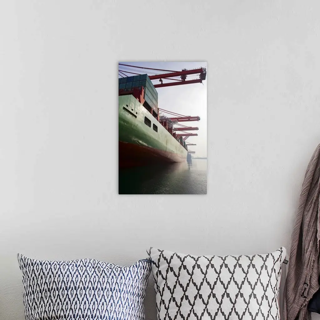 Cargo ship at port being loaded.