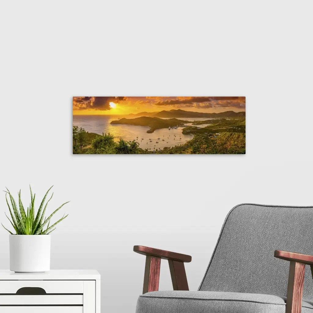 Caribbean, Antigua, English Harbour From Shirley Heights, Sunset