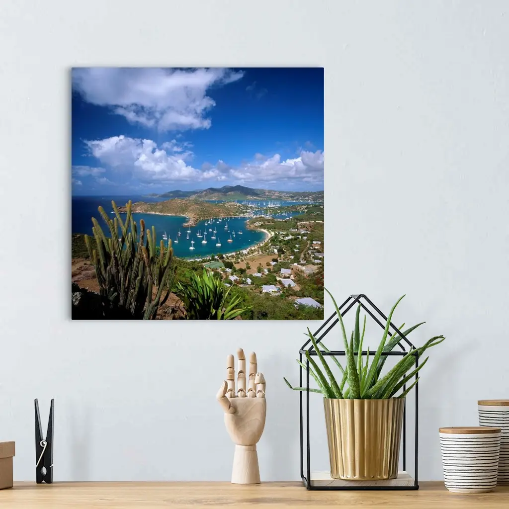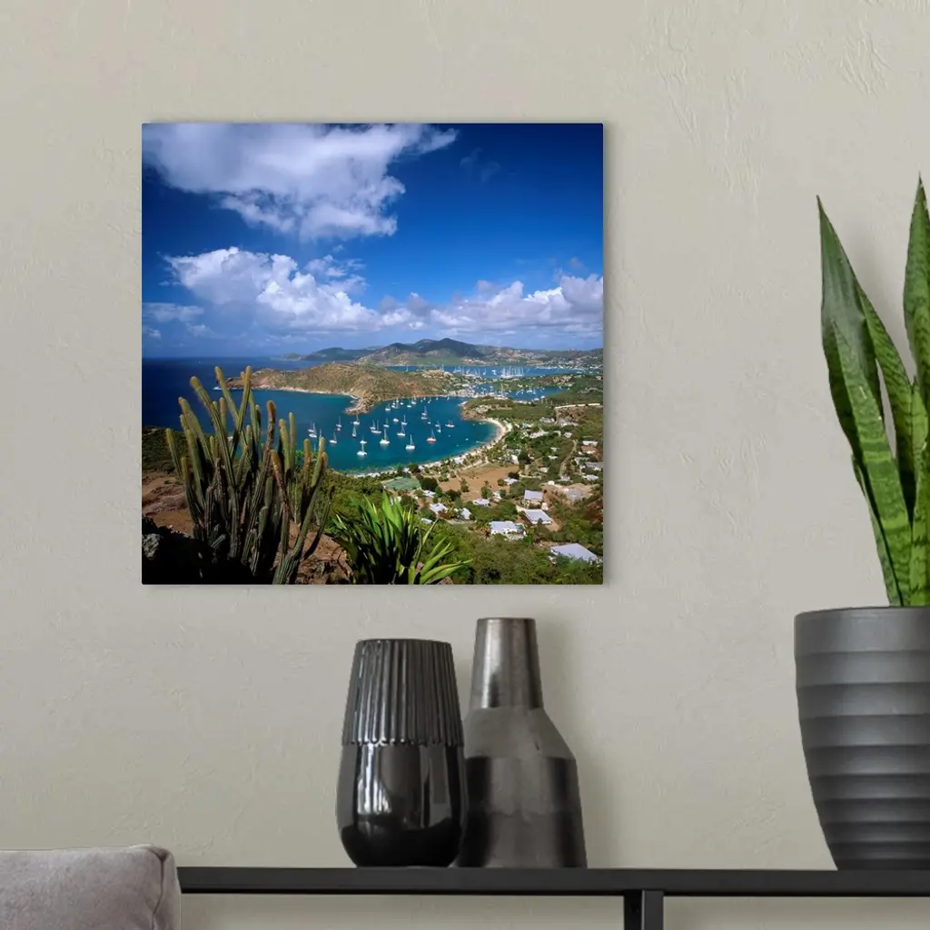 Caribbean, Antigua, Shirley Heights, view towards English harbor and Falmouth harbor wall art for home and office decor. Discover canvas art prints, photos, mural, big canvas art and framed wall art in GreatBigCanvas.com's varied collections.