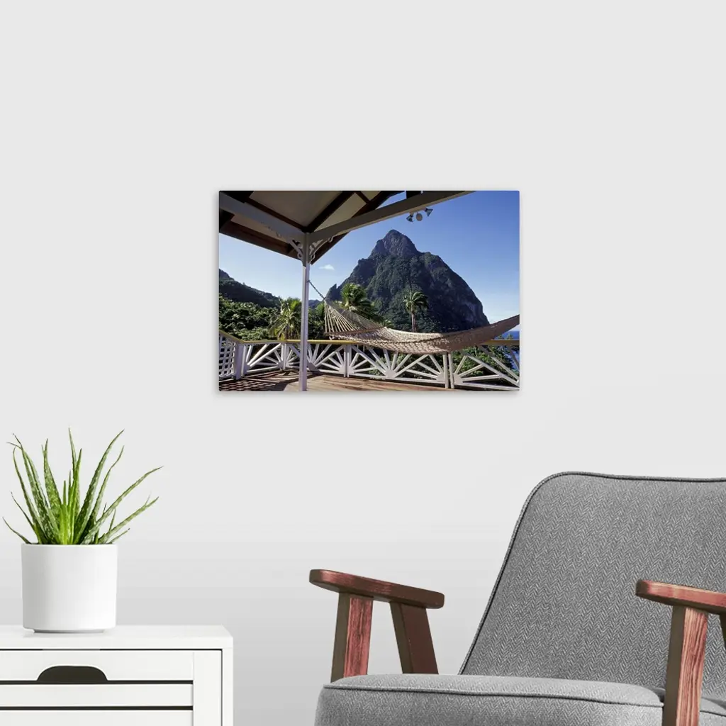 Caribbean, British West Indies, St. Lucia, The Pitons From Stonefield Estate