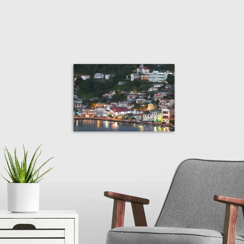 Caribbean, GRENADA, St. George's.St. George's Harbor, The Carenage.Evening View from Fort George