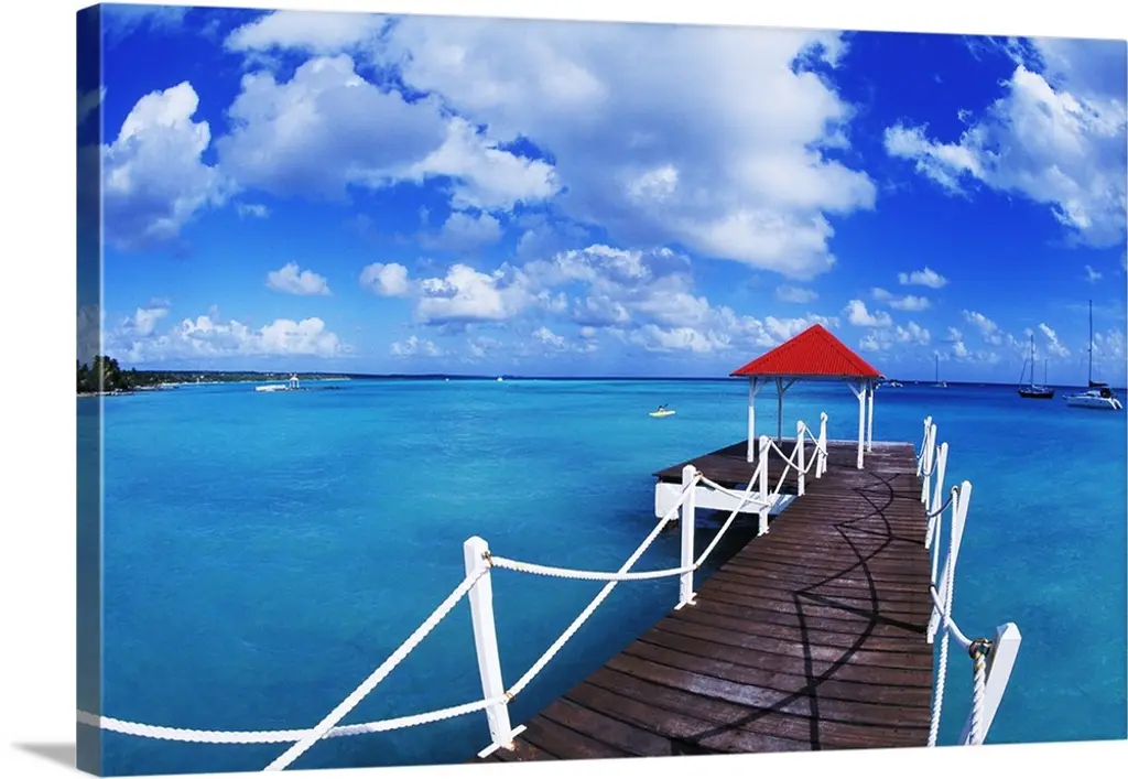 Caribbean, Guadeloupe, Colorful Dock And Crystal Blue Water