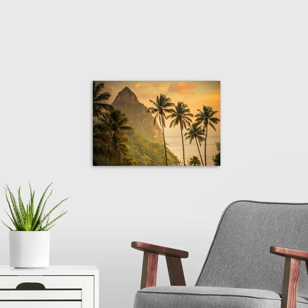 Caribbean, St Lucia, Petit (Near) And Gros Piton Mountains