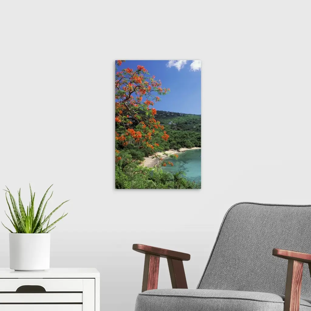 CARIBBEAN, St Thomas.Hull Bay with flowers