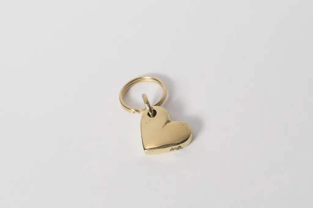 Carl Aubo¨ck Model #5600 'Heart' Solid Brass Keyring w/ Signature. Designed in the 1950s, this incredibly refined and sculptural object is hand fabricated in polished brass. Price is per item. One in stock ready to ship. Available in unlimited quantities. Please note that in-stock availability is subject to change at any time. Allow additional 3-4 weeks for items not in stock. Can take up to 8 weeks. For time sensitive orders, please contact us prior to purchasingProduced by Carl Auböck IV in the original Auböck Werkstätte in the 7th district of Vienna using the same exacting standards, high-quality materials, original molds and techniques of his legendary grandfather. Auböck's design career was long and varied, reaching its pinnacle of prestige at the Triennale di Milano in 1954, where he received four gold medals in recognition of his iconic work.Please note that only one representative example of each item is shown in the images. Finish varies from item to item due to the handmade nature of their fabrication.