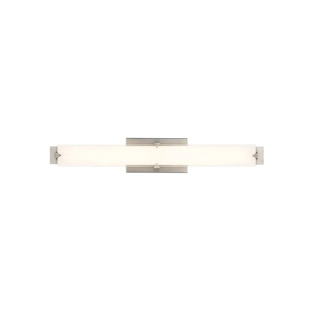 A statement in modern geometry, the Carlisle LED Bath & Vanity Wall Light from Modern Forms features a bold, graphic frame for a sophisticated look. This versatile light is defined by its unique frame, where rectilinear and triangular shapes intersect. The mitered glass diffuser houses a color-temperature-selectable LED, casting a warm, inviting glow. Designed to be mounted in any orientation, it’s a perfect, adaptable accent for a modern bathroom, bringing a touch of refined, contemporary style to your space. Highlights:
