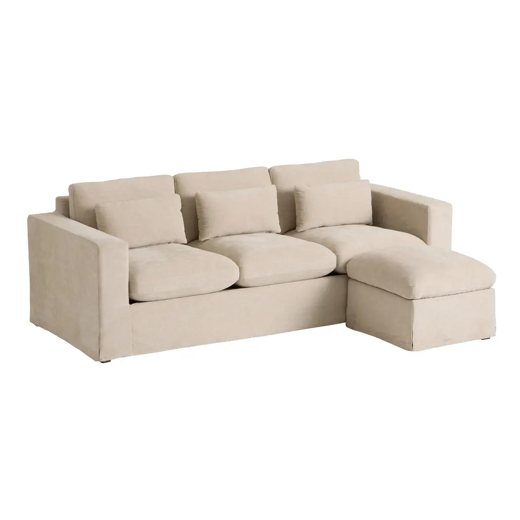 Carlyle Ivory Faux Slipcover Upholstered Sofa Ottoman