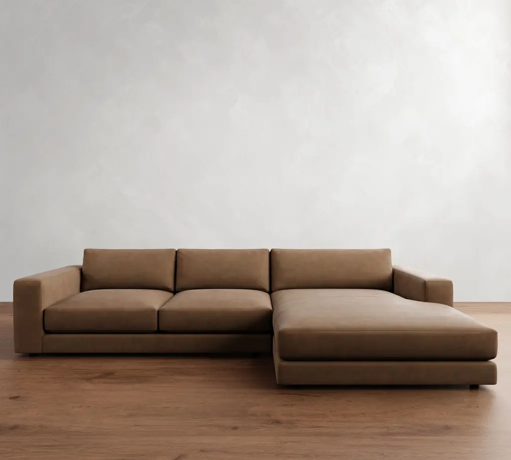 Carmel Lounge Leather Chaise Sectional (112"–134")