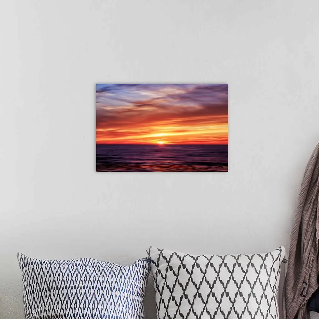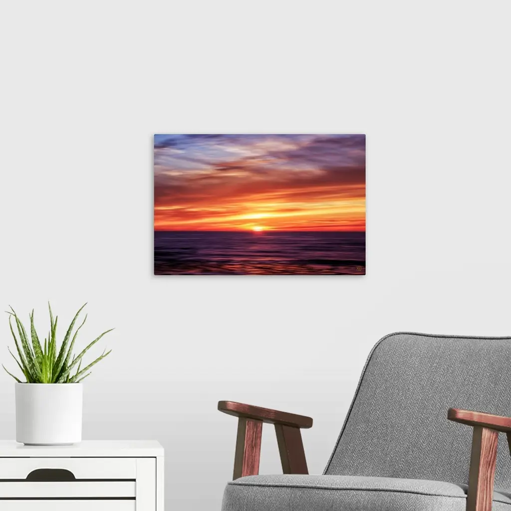 A spectacular ocean sunset in Carmel, California. Michael Lynberg's stunning works of photo-impressionism capture the breathtaking coastline in unique and captivating ways, adding beauty and inspiration to the collector's home.