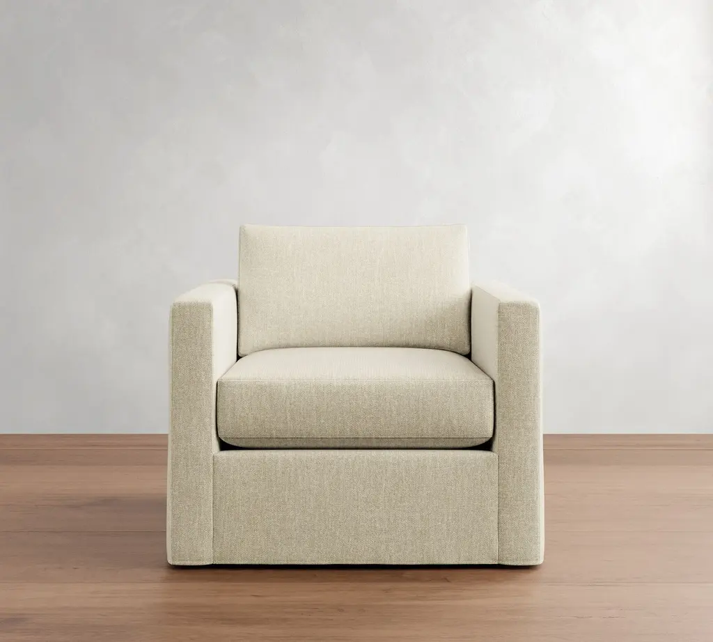 Carmel Slim Arm Slipcovered Swivel Chair