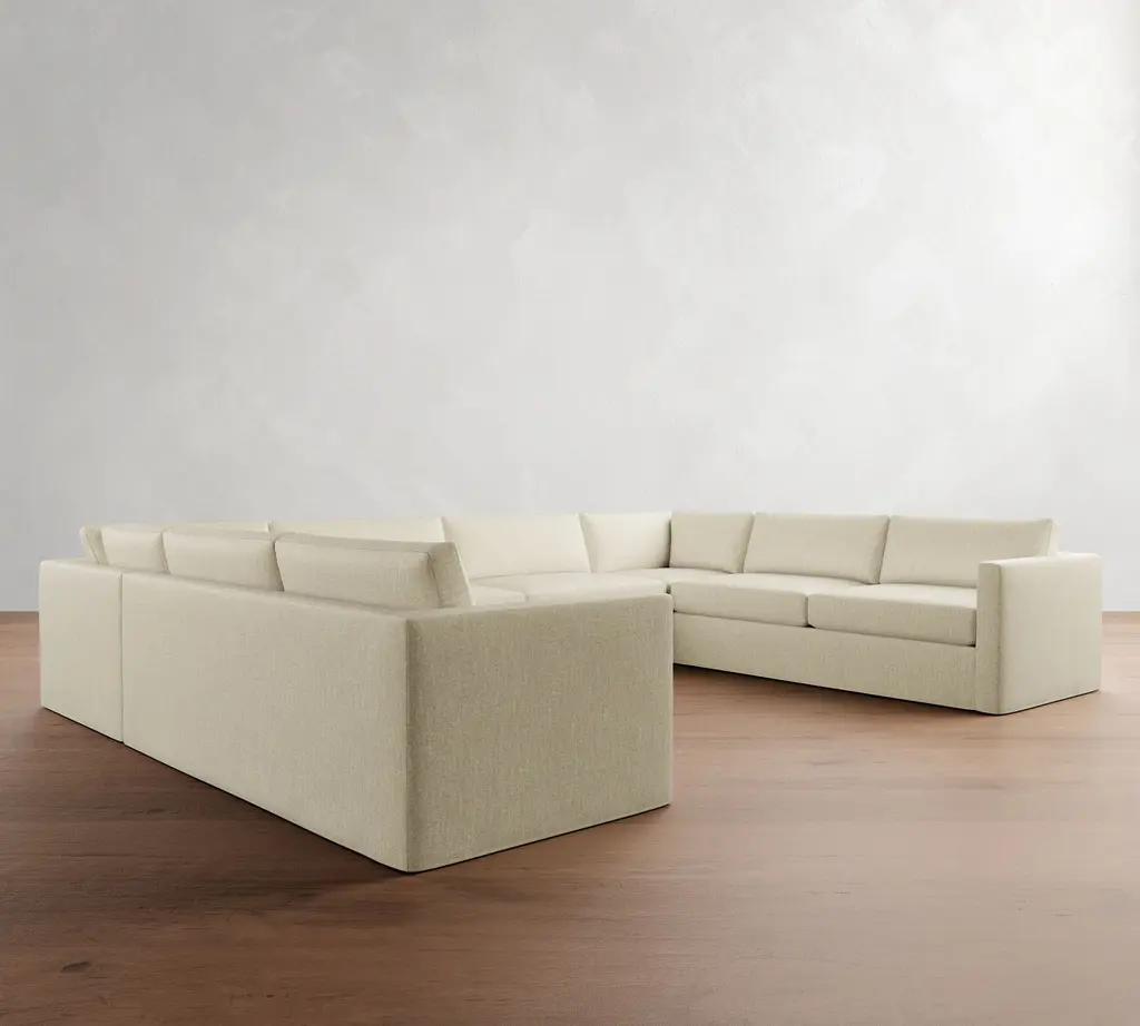 Carmel Slim Arm Slipcovered U-Shaped Sectional (144")