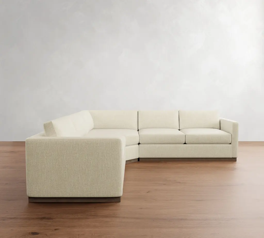 Carmel Slim Arm Wood Base 3-Piece L-Shaped Wedge Sectional (120")