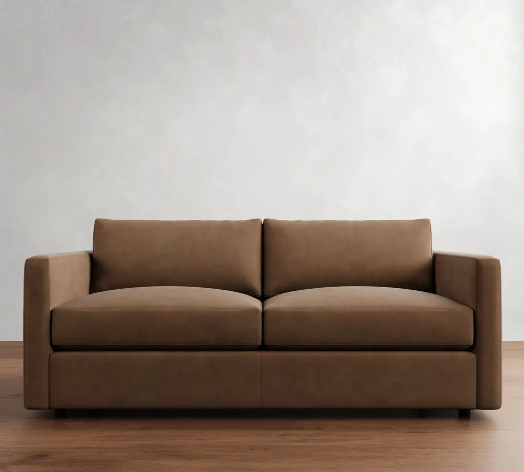 With its clean, pared-down profile, our Carmel Collection has a livable look that suits any space. Structured square arms are balanced by soft down-blend cushions and handsome top-grain leather for lounging that proves less is more.