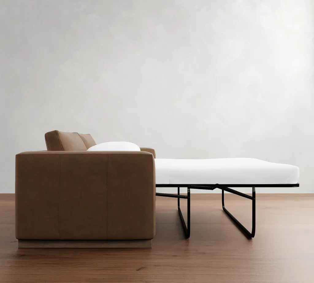Carmel Wide Arm Leather Wood Base Sleeper Sofa (86")