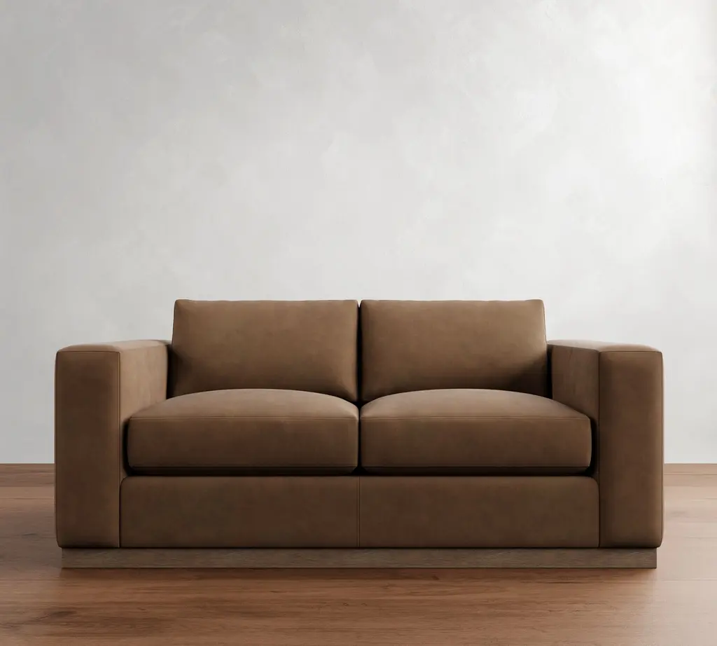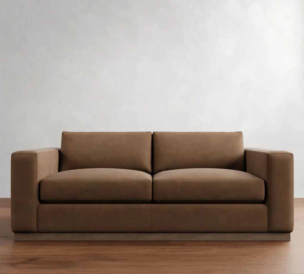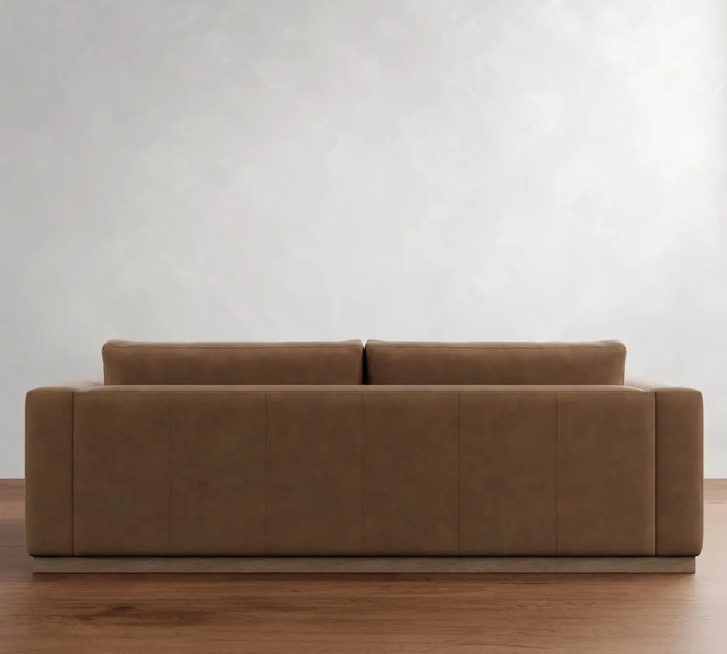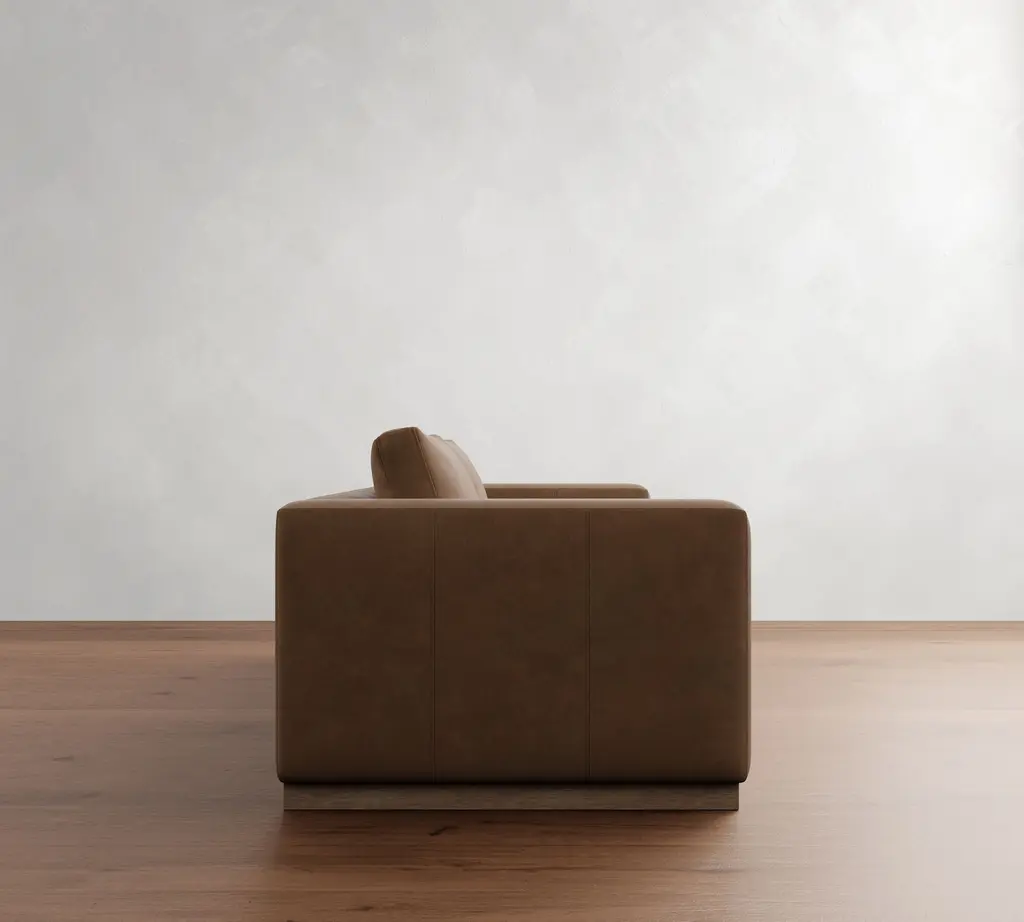 Carmel Wide Arm Leather Wood Base Sofa (62"–122")