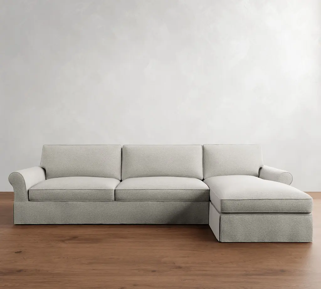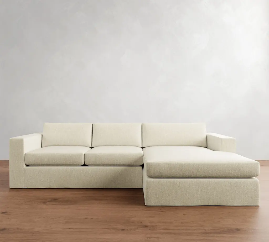 Carmel Wide Arm Slipcovered Chaise Sectional (113"–135")