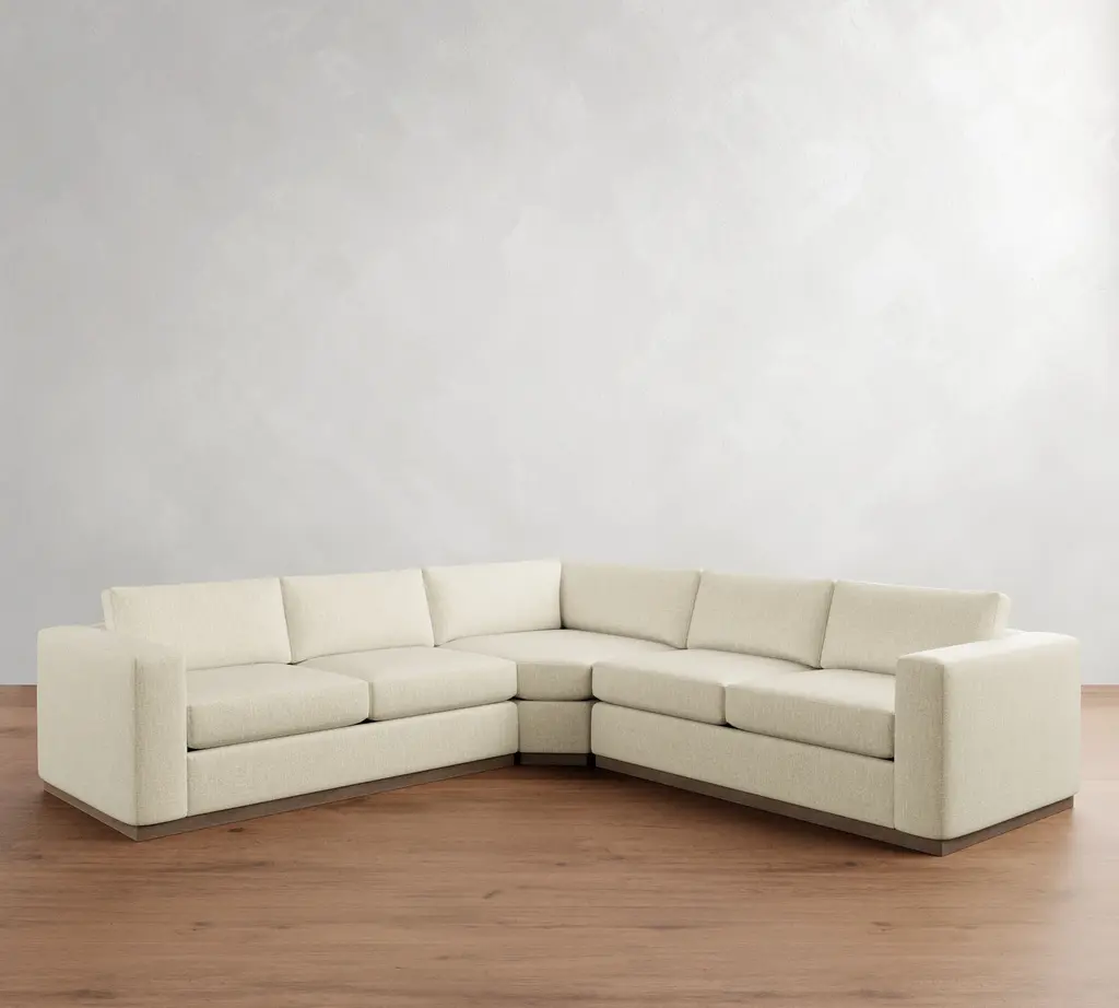 Carmel Wide Arm Wood Base 3-Piece L-Shaped Wedge Sectional (123")