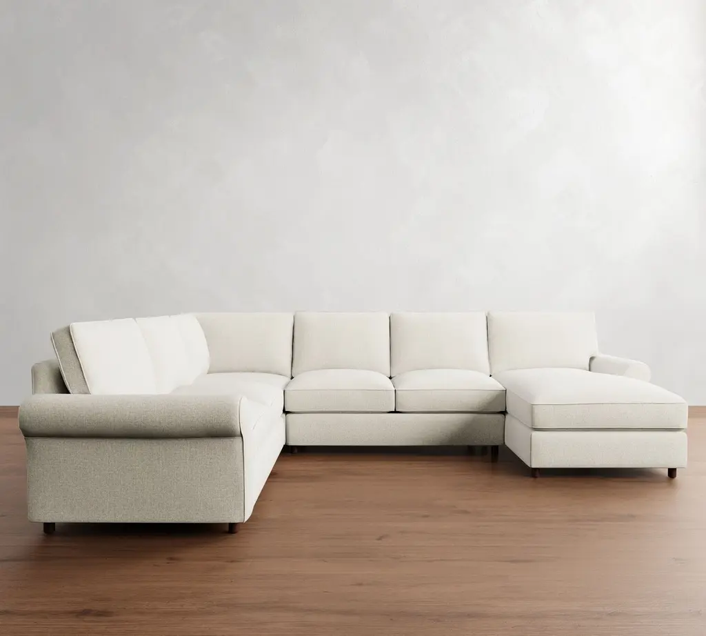 Carmel Wide Arm Wood Base 3-Piece Wedge Sectional (123")