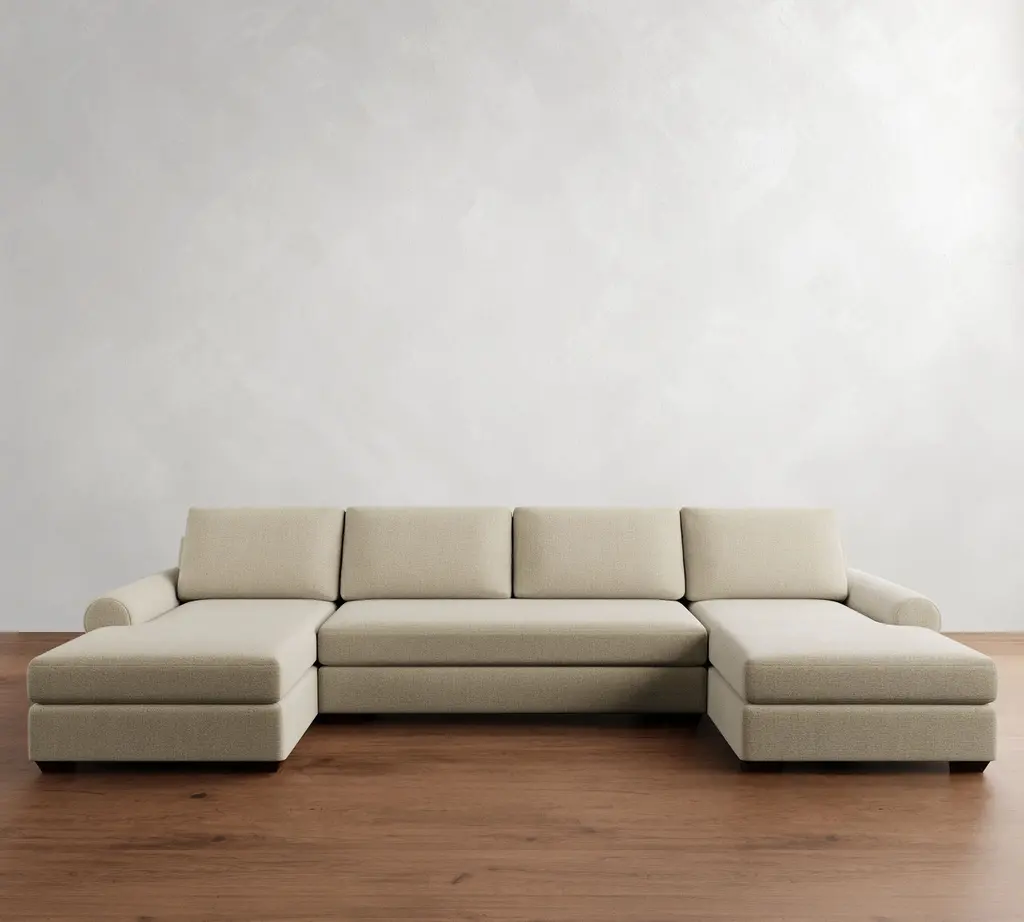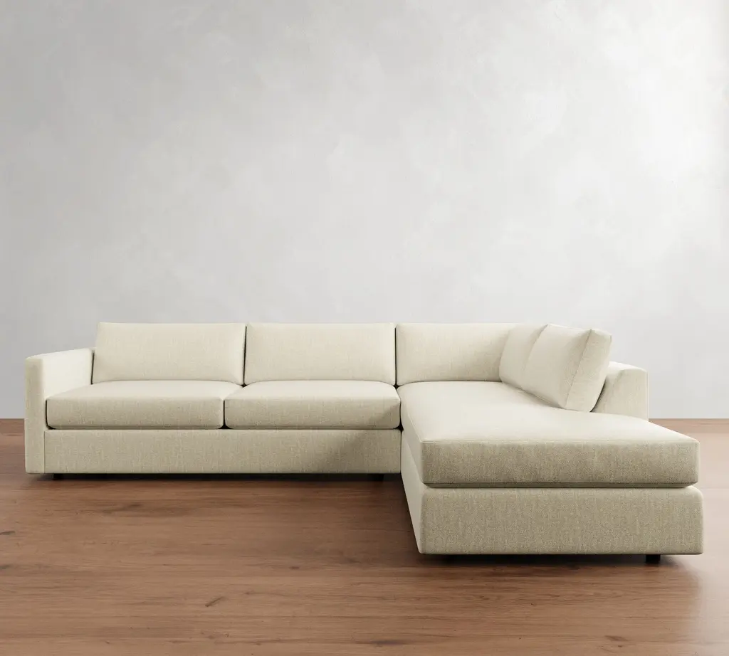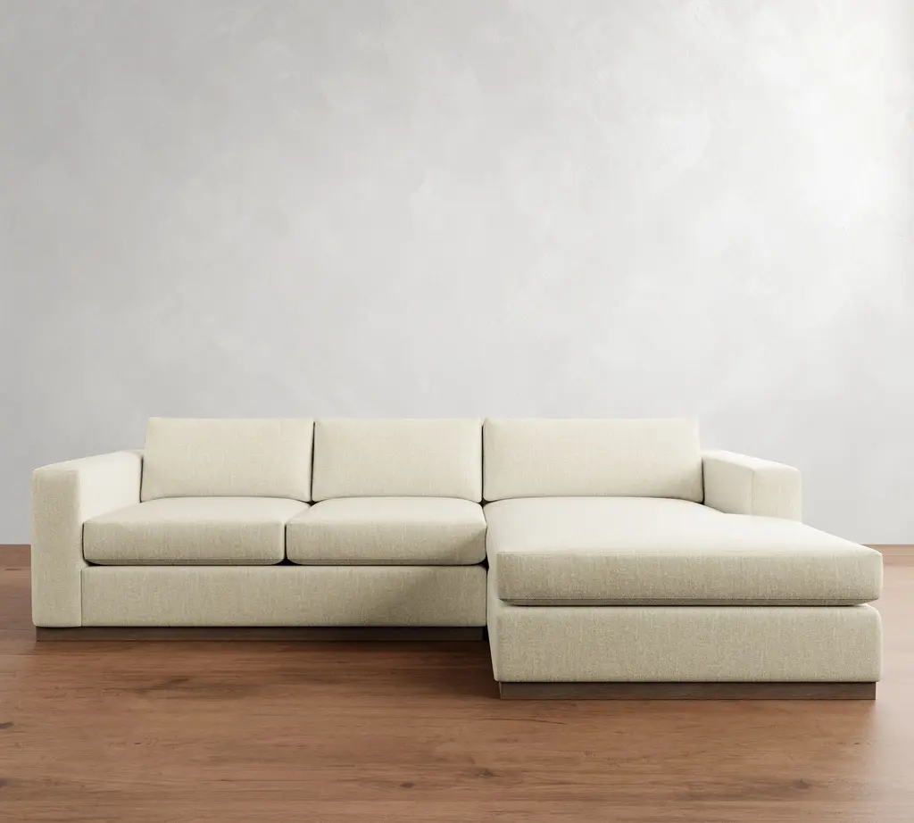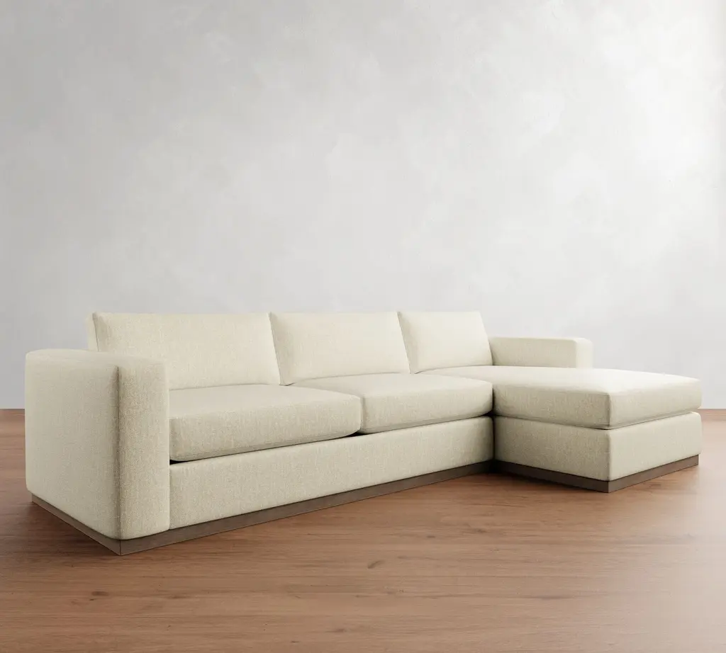 Carmel Wide Arm Wood Base Chaise Sectional (113"–135")