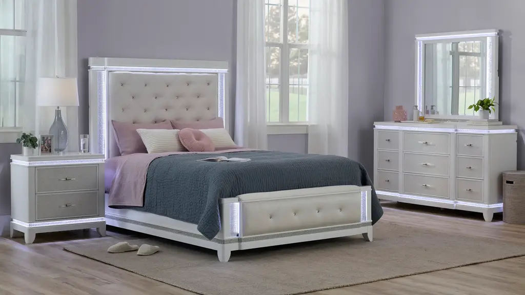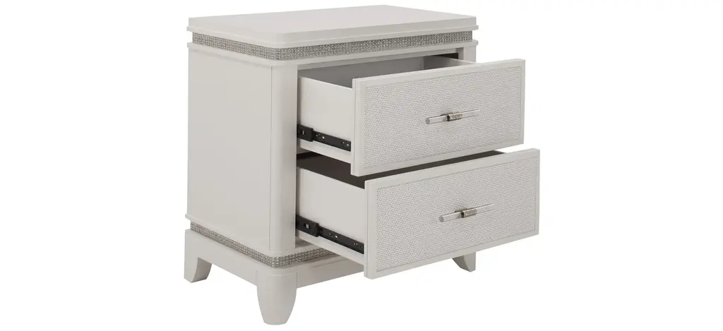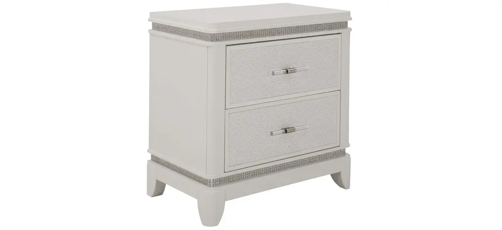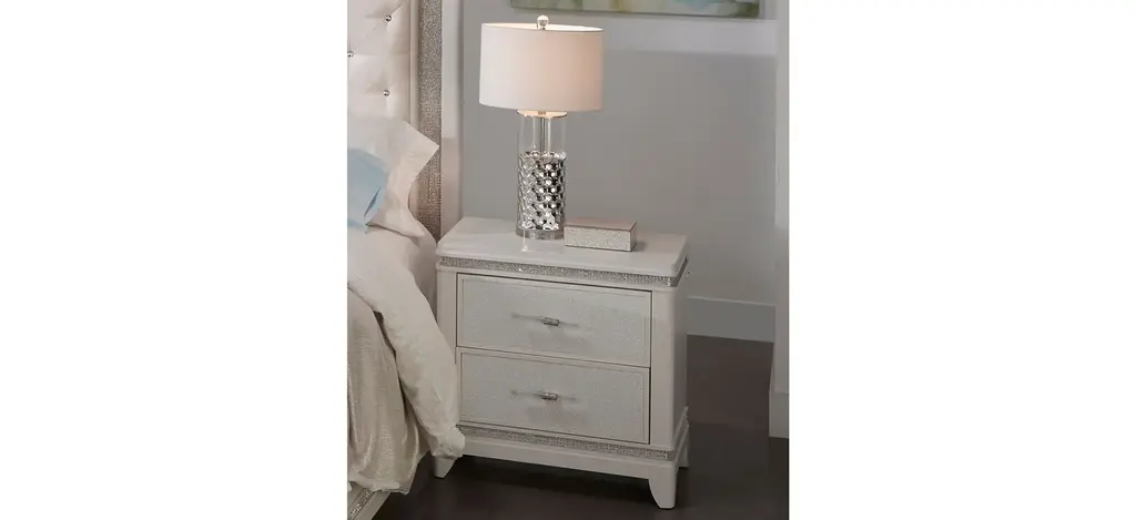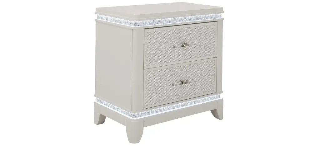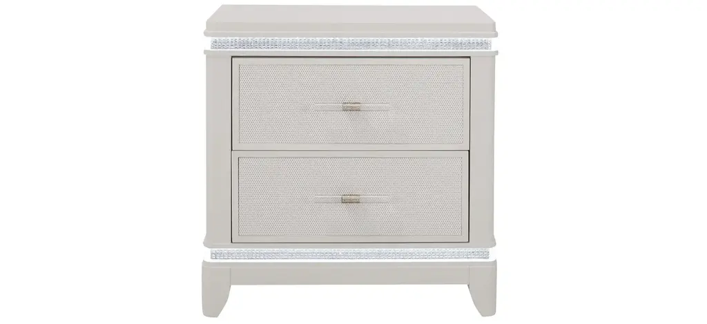 The Carmelita Nightstand has everything you need to make your bedroom fabulous and functional. It features 2 USB ports and touch LED lighting for convenience, roomy drawers, and an elegant chrome hardware finish.