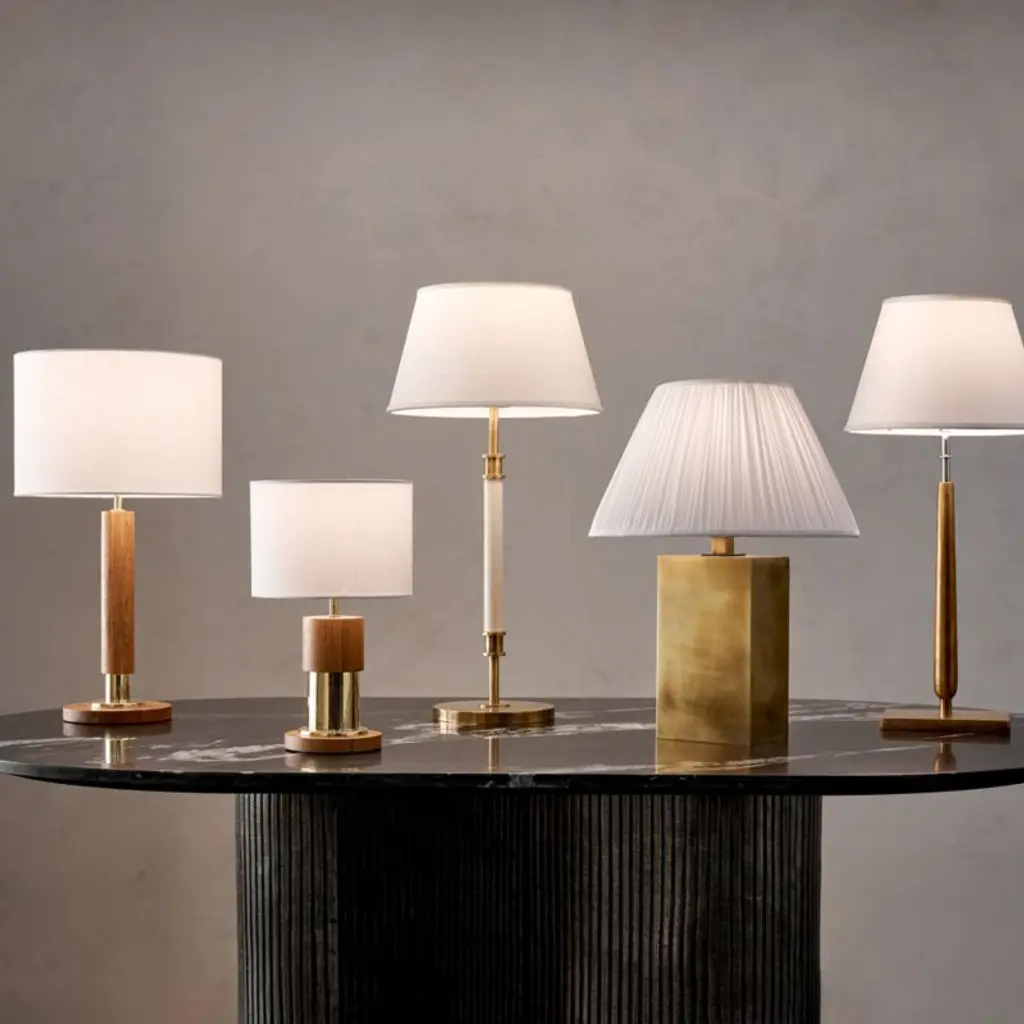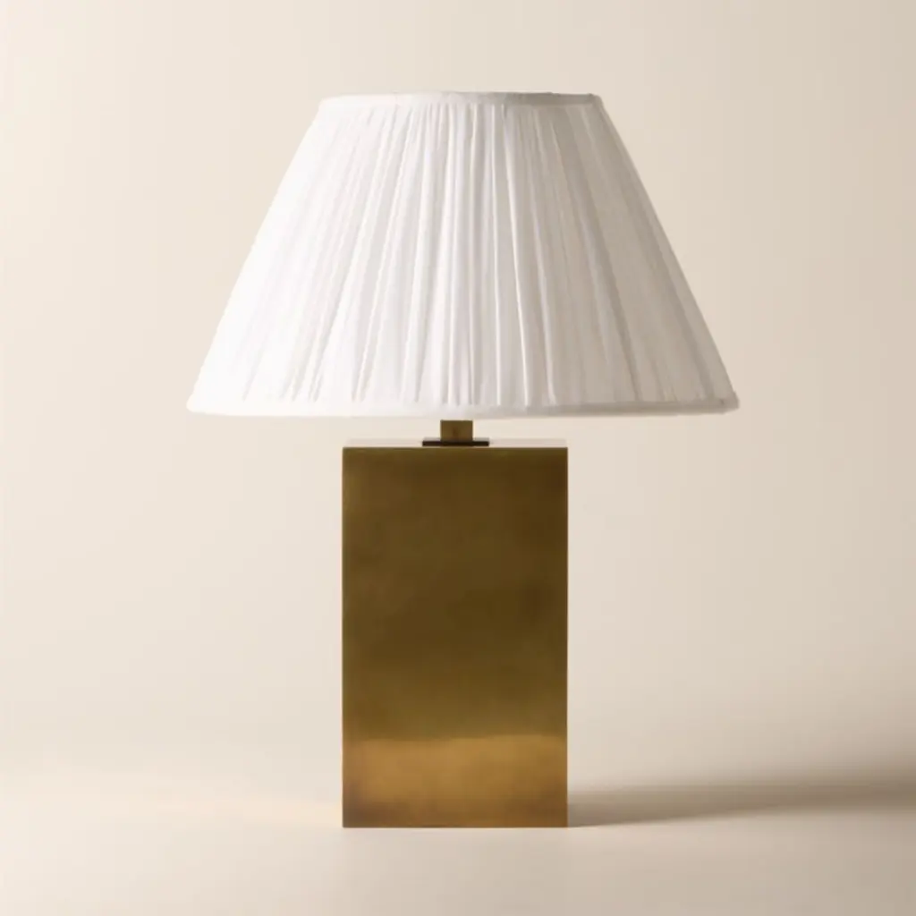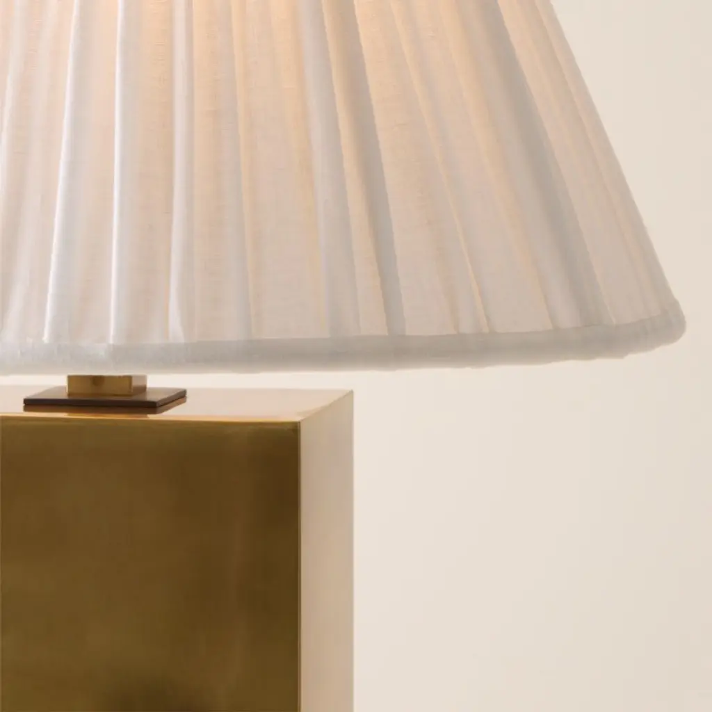 Carmichael Large Aged Brass Table Lamp With Pleated White Shade