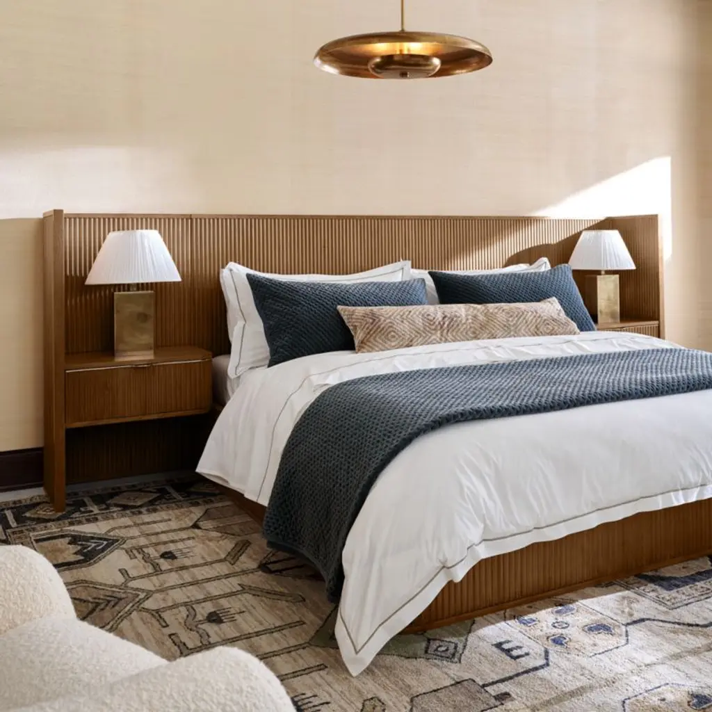 Classic aged brass table lamp by Chicago-based AD100 designer Kara Mann is topped with a white linen shade pleated by hand for softly diffused light. The warm, unlacquered brass is aged by hand in a multistep process to bring out the metal's rich tonal highs and lows. The living finish will continue to deepen and grow richer over time. CB2 exclusive.