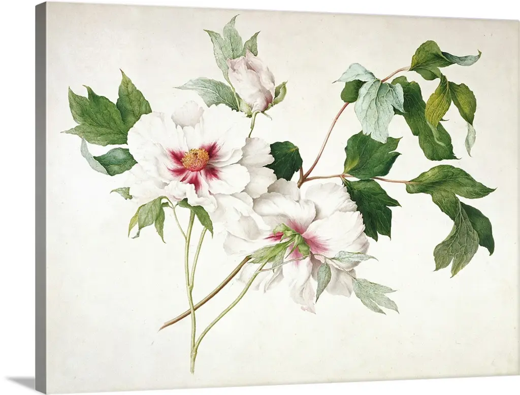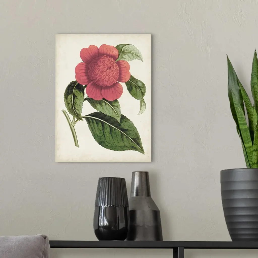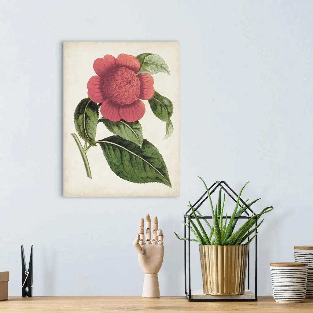 Vintage-inspired botanical illustration of a carnelian pink flower.
