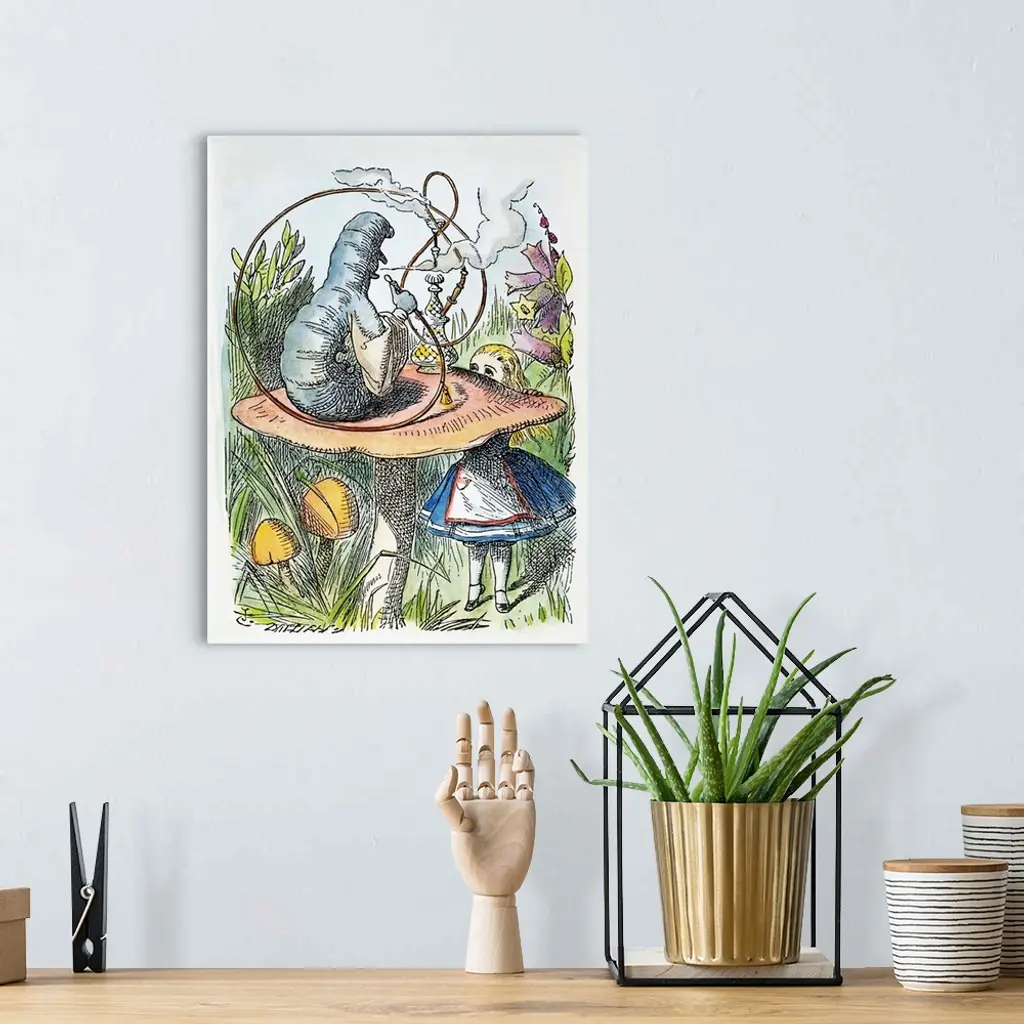 Alice's eyes immediately met those of a large blue caterpillar': after the design by Sir John Tenniel for the first edition of Lewis Carroll's Alice's Adventures in Wonderland.