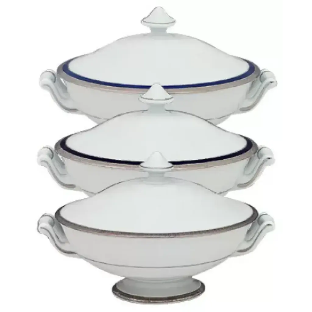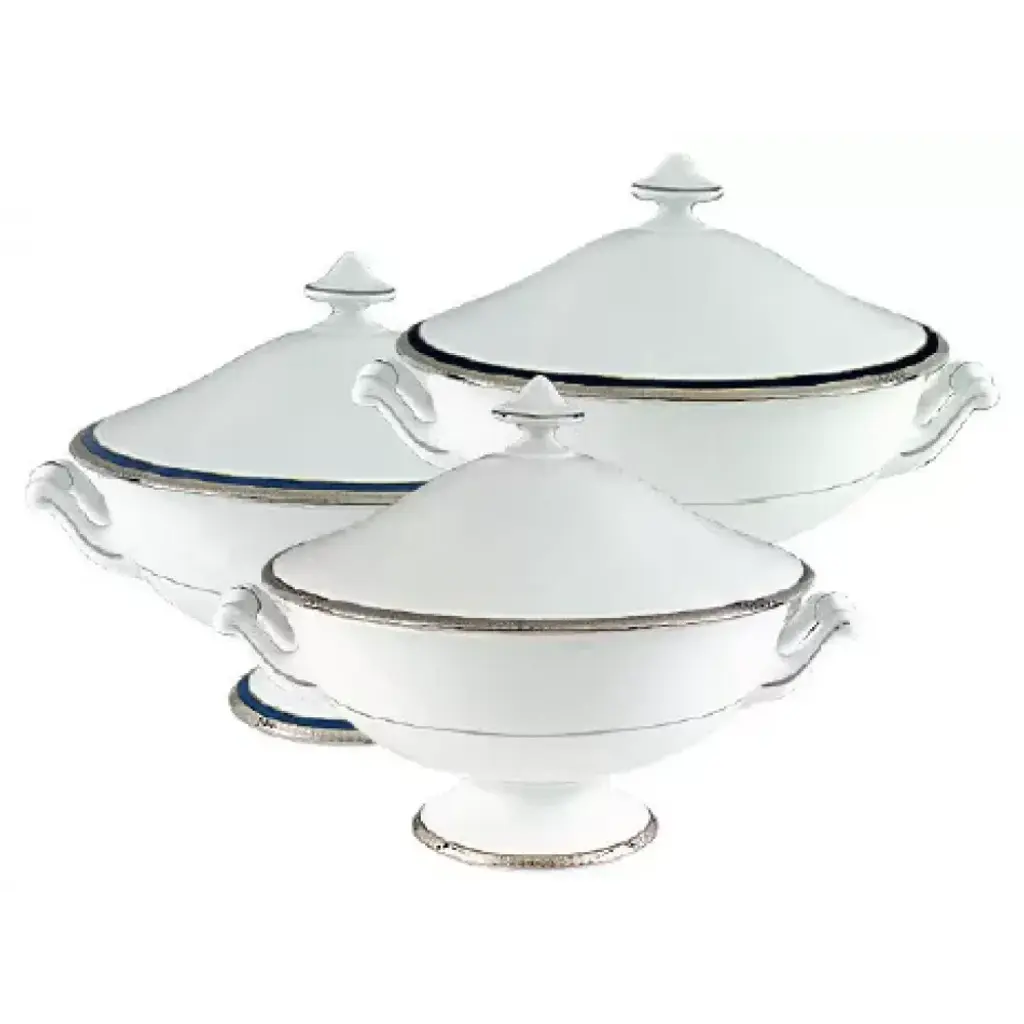 Playful rhythms and lines adorn the rim of the Carrousel collection by Deshoulières. Lilting patterns in gray and platinum are inspired by musical notes. Five piece place setting includes dinner plate, dessert plate, bread & butter plate, teacup and saucer. Founded in 1826, Deshoulières is the leading French porcelain maker today. Their fine white Limoges porcelain is strong enough for everyday use. Their style is well known around the world. The painters and decorators have generations of knowledge. Inspired by trends from both interiors and fashion, their patterns are always refined. Deshoulières embodies a true spirit of French style. With their new collections, Deshoulières delights everyone from homeowners to professional chefs. Invite elegance to your table with Deshoulières.