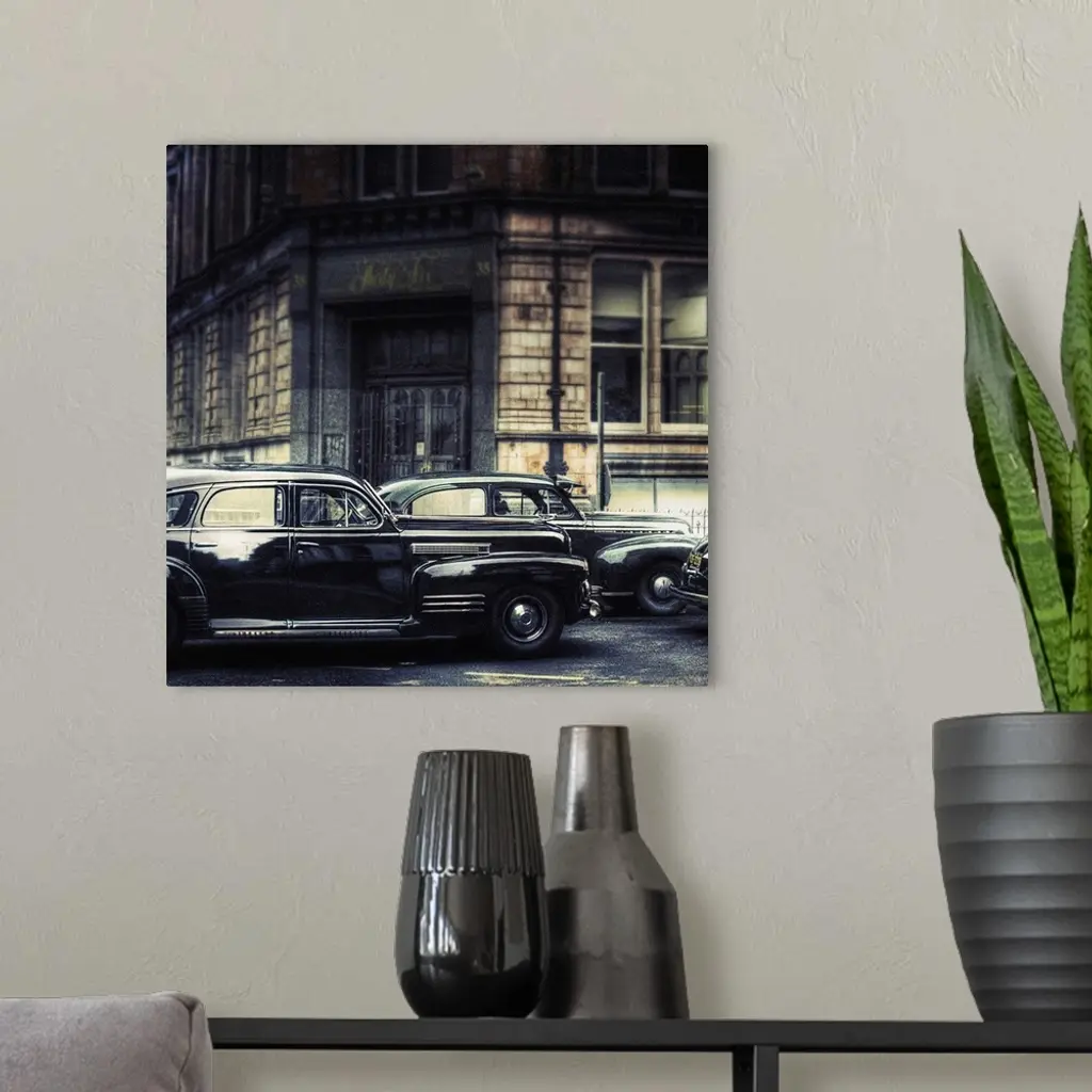 A 1941 cadillac series-61 and a 1941 chevrolet master deluxe sedan parked in the street with full period look