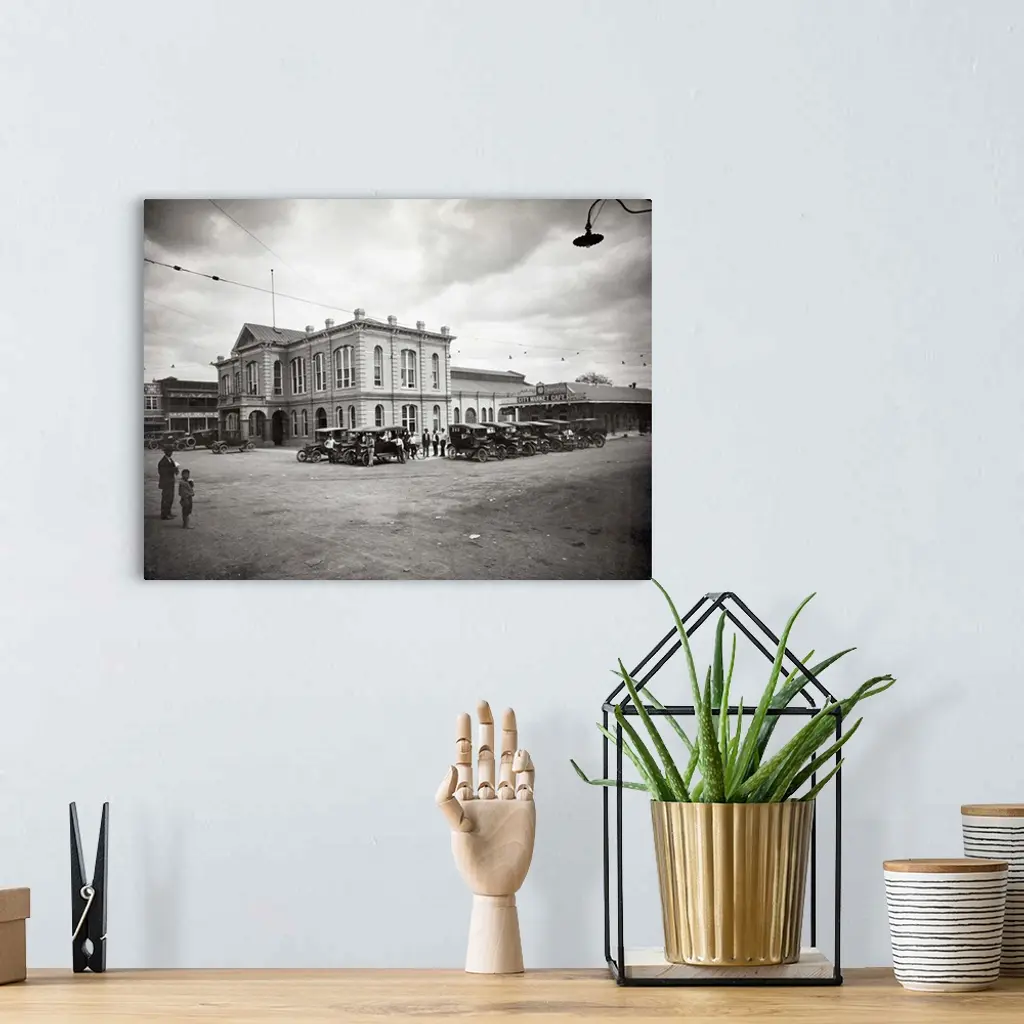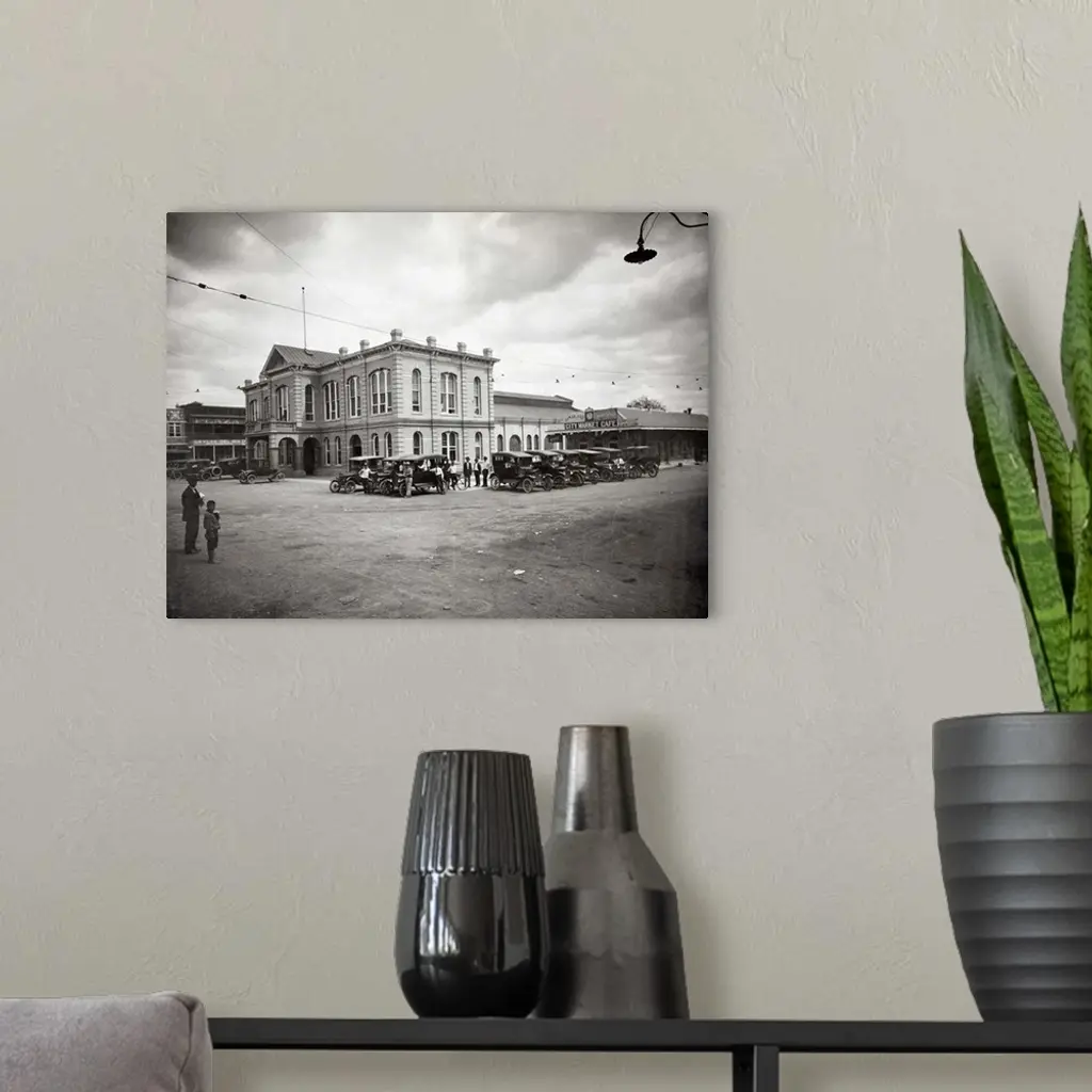 Cars parked on the square in Laredo, Texas. Photograph, c1925.