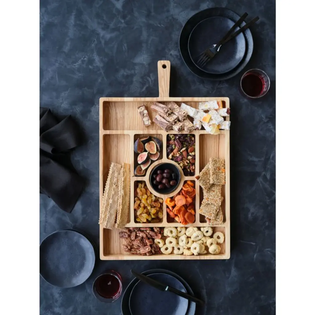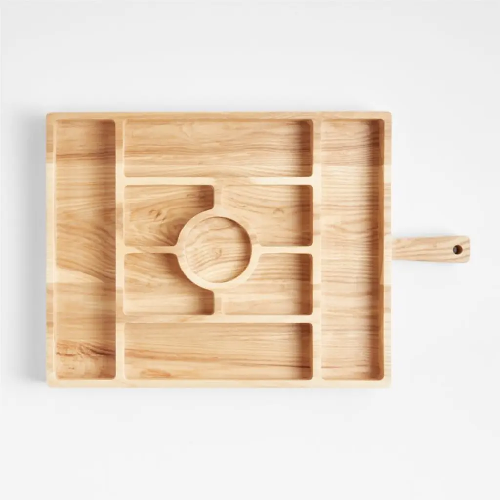 Divided into nine sections, our Carson serving board partitions ingredients for the well-organized cheese or charcuterie platter. Made of solid ash, the partitioned wood board shows off its lovely grain, while providing separate compartments for crackers, fruit, salume, cheese, nuts and olives. A handle facilitates transport of the large square board from kitchen to table.By choosing FSC®-certified products, you are supporting responsible management of the world's forests.